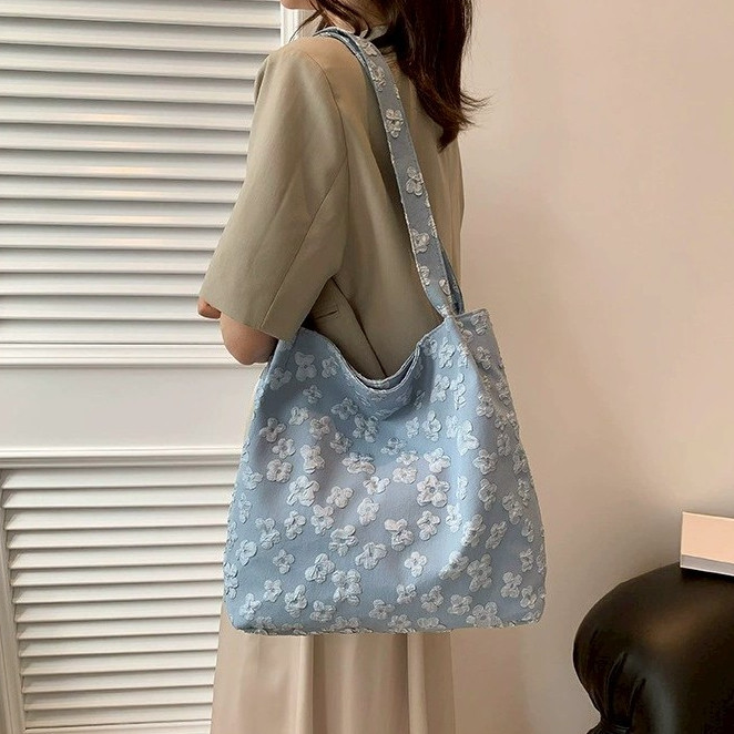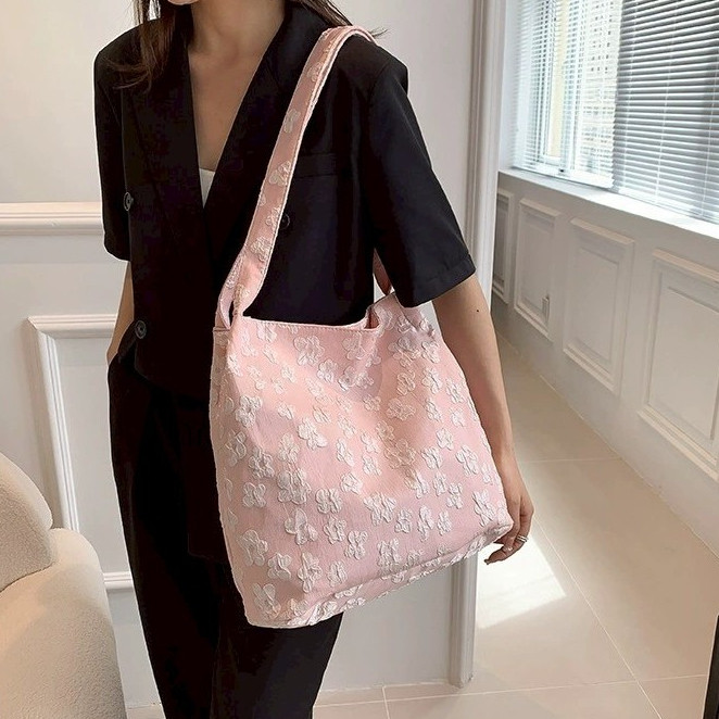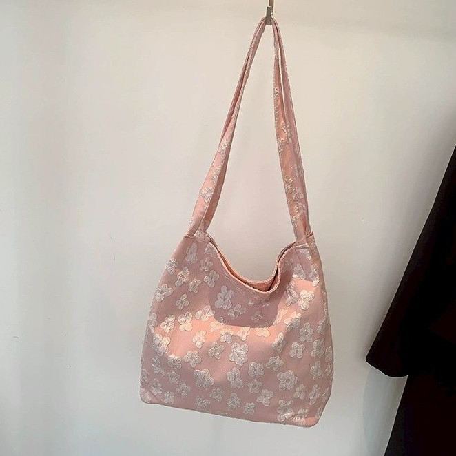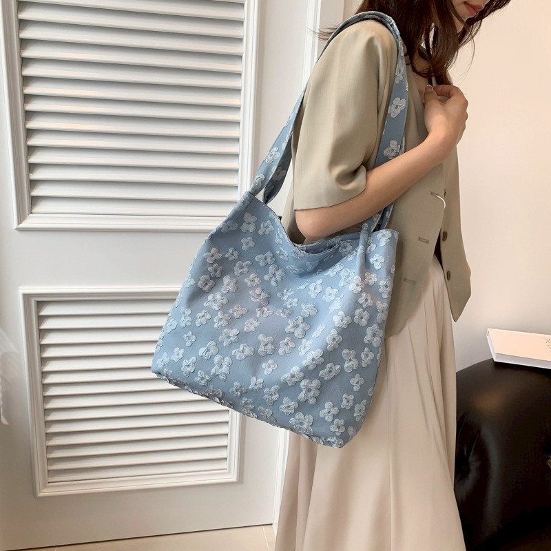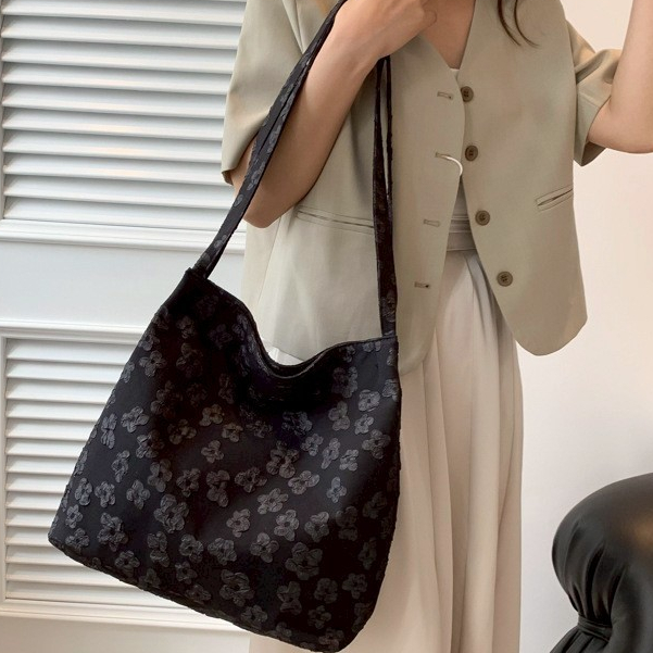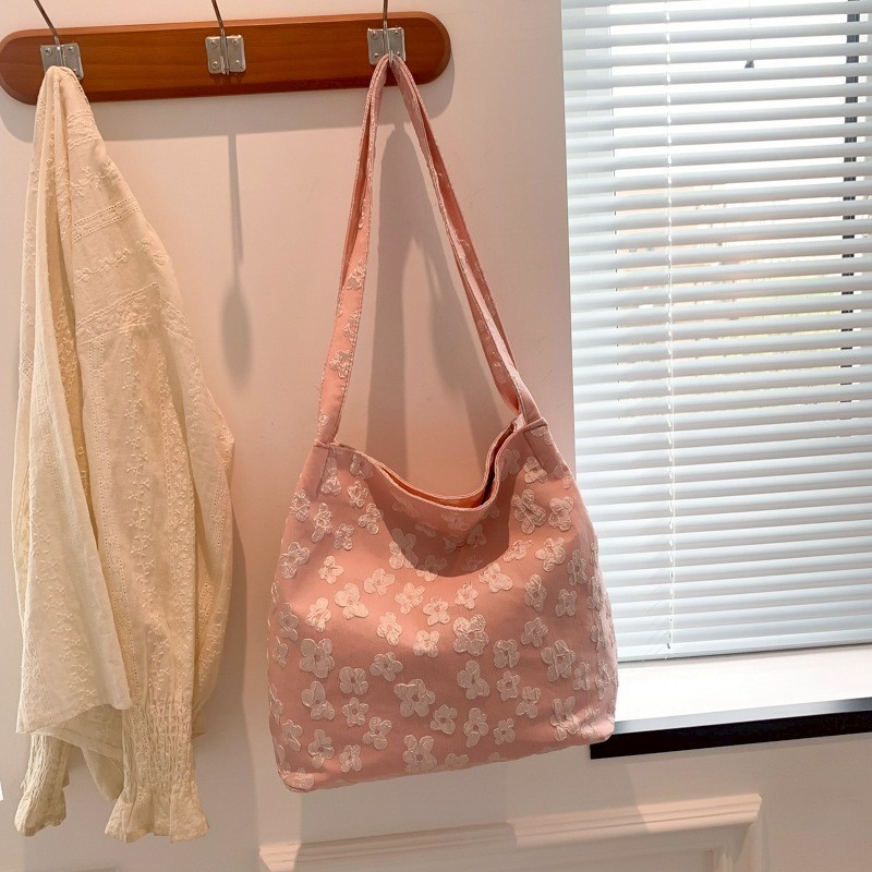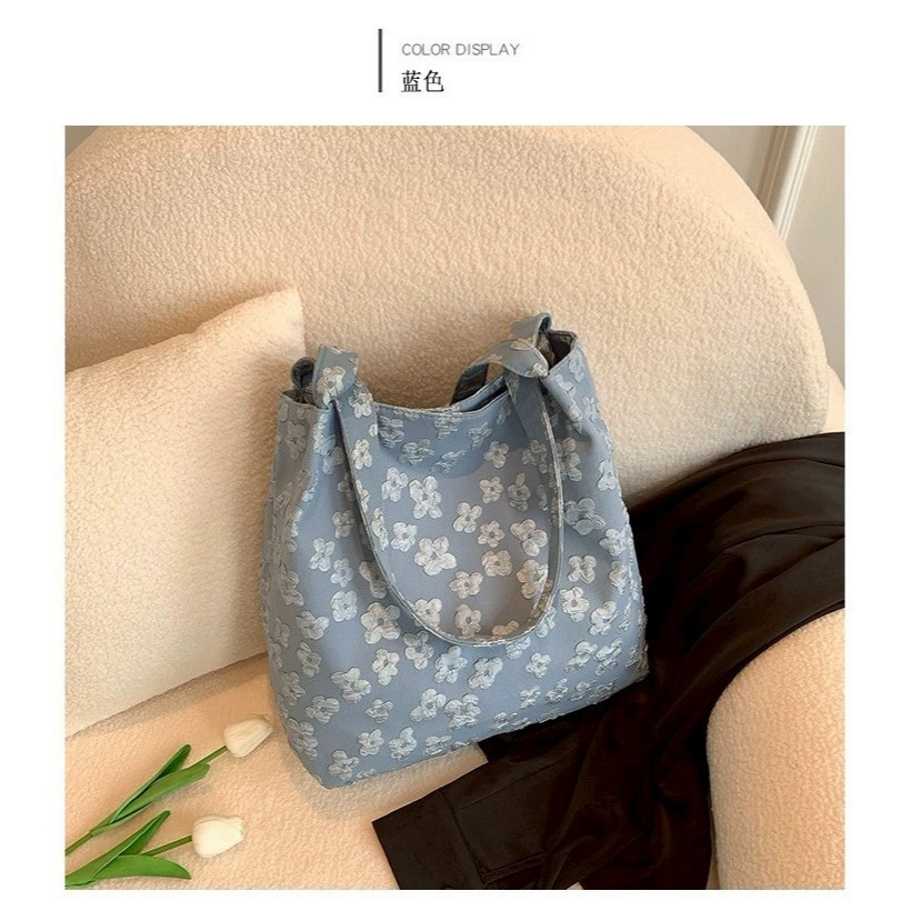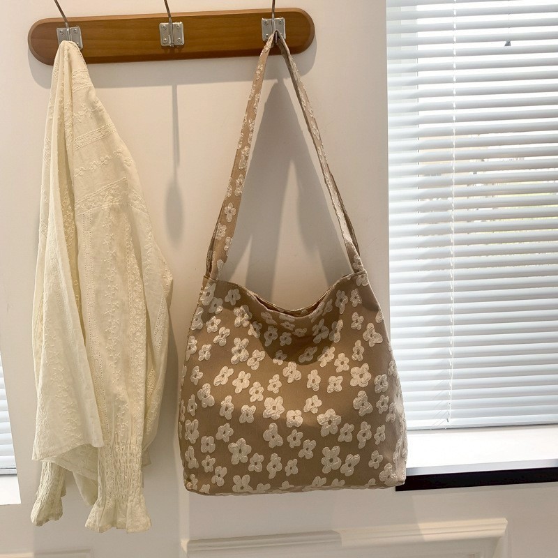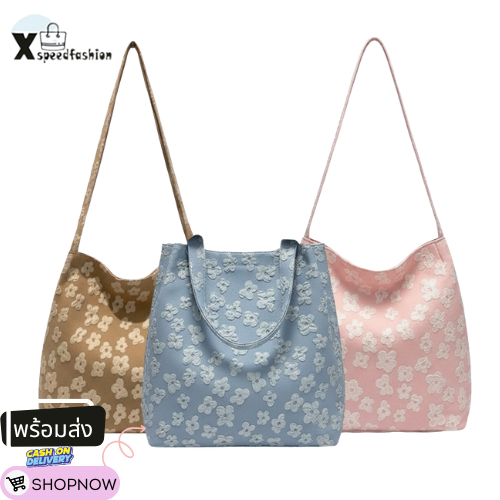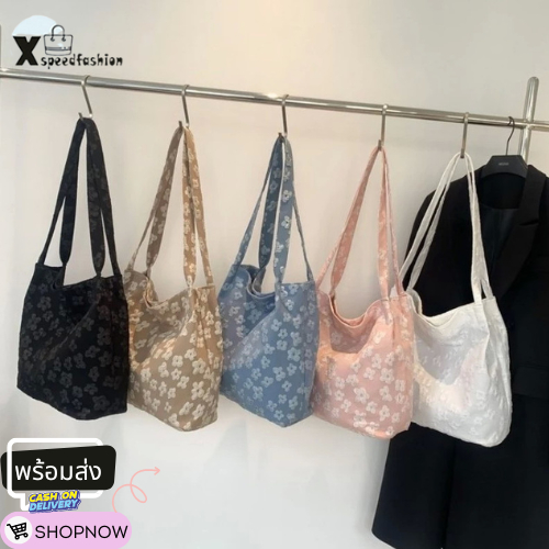 (ส่งด่วน)xspeedfashion(X2391) กระเป๋าผ้าสะพายไหล่ ผ้าแคนวาสลายดอกไม้-ใบใหญ่