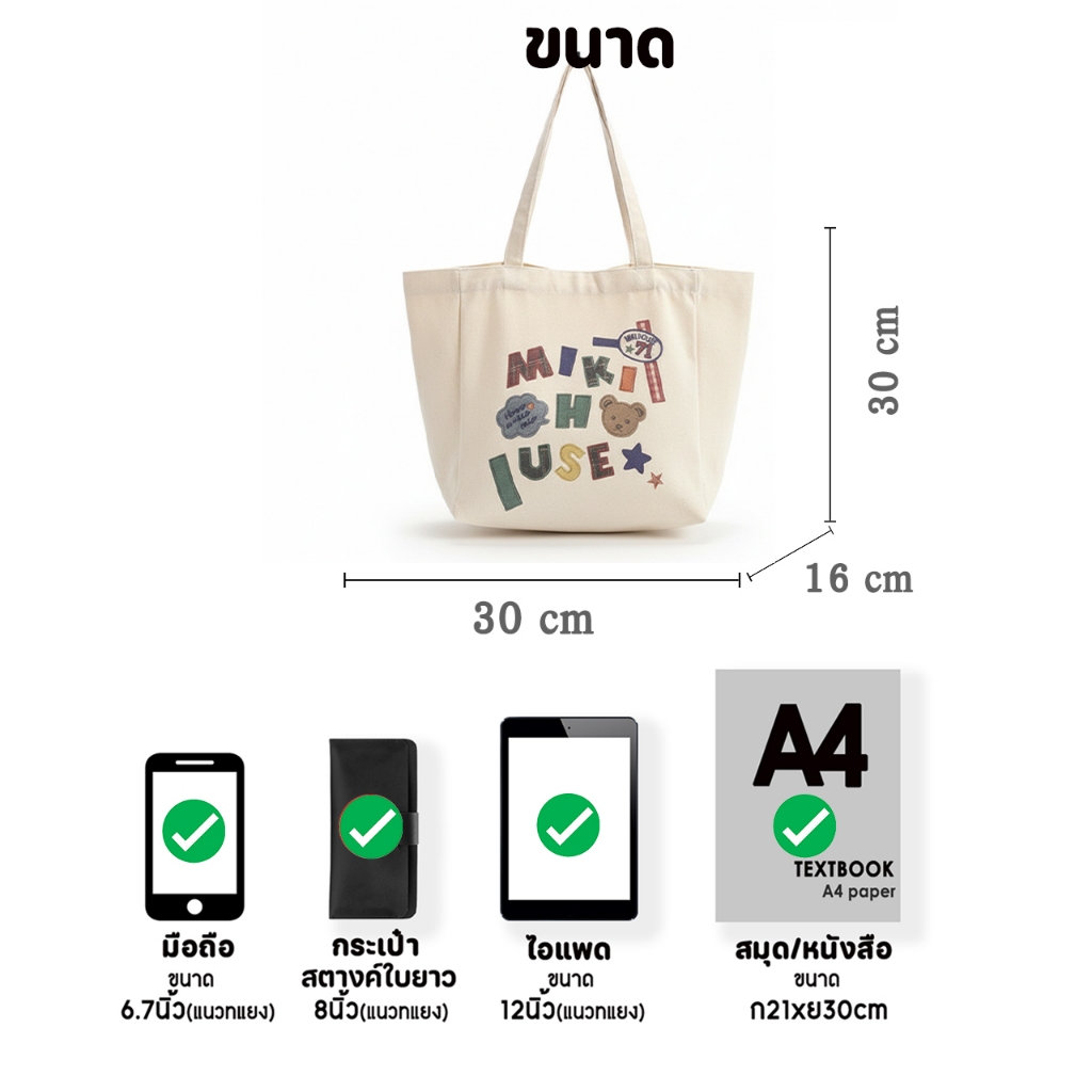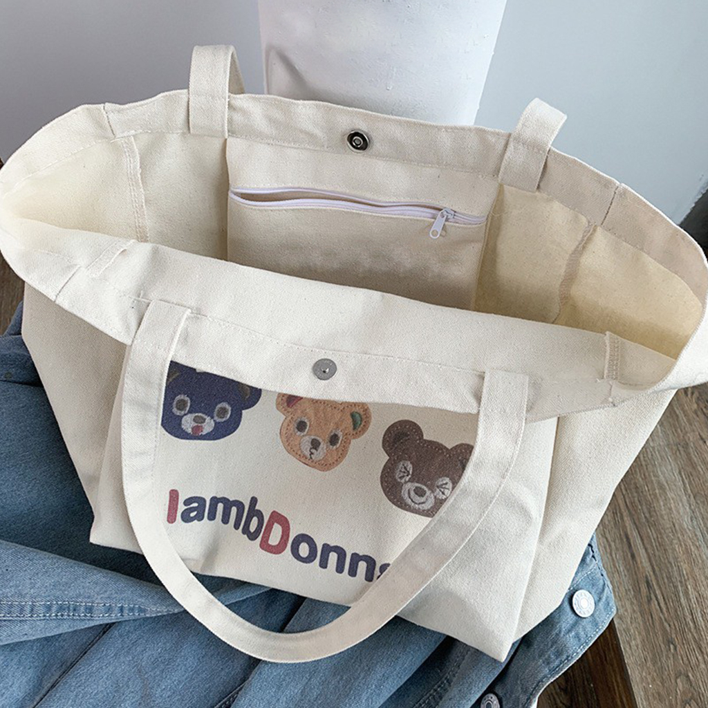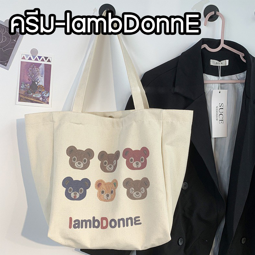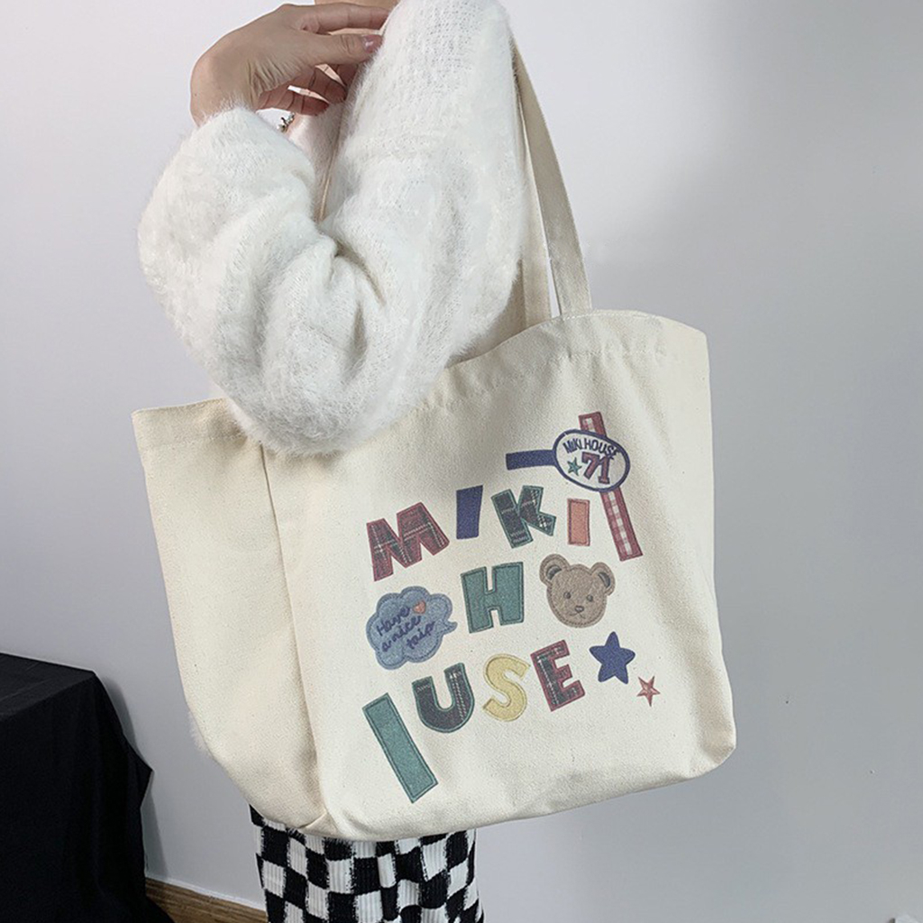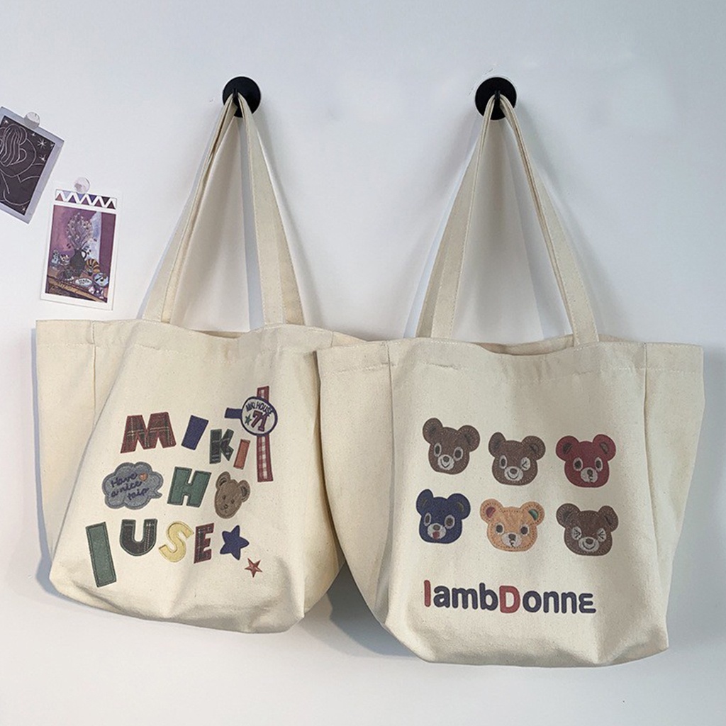 (มีส่งด่วน) tokyosellected(T1877) กระเป๋าผ้าใบใหญ่ หน้าหมี MIKI ผ้าแคนวาสมี2ลาย