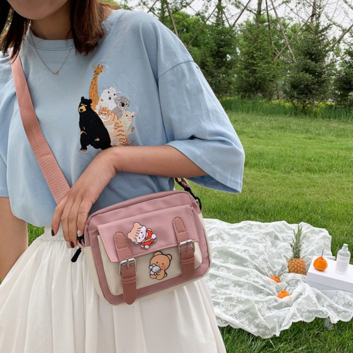 (มีส่งด่วน) tokyosellected(T1406) กระเป๋าสะพายข้างสีทรูโทนน่ารัก