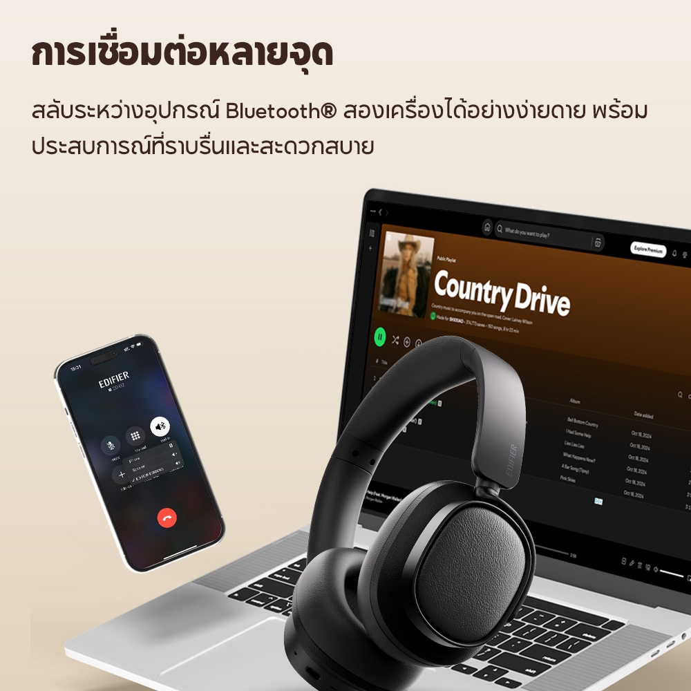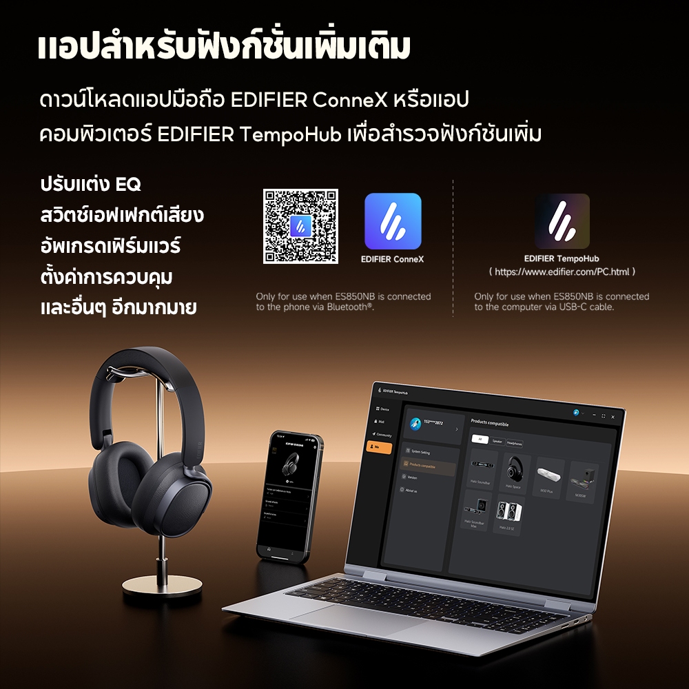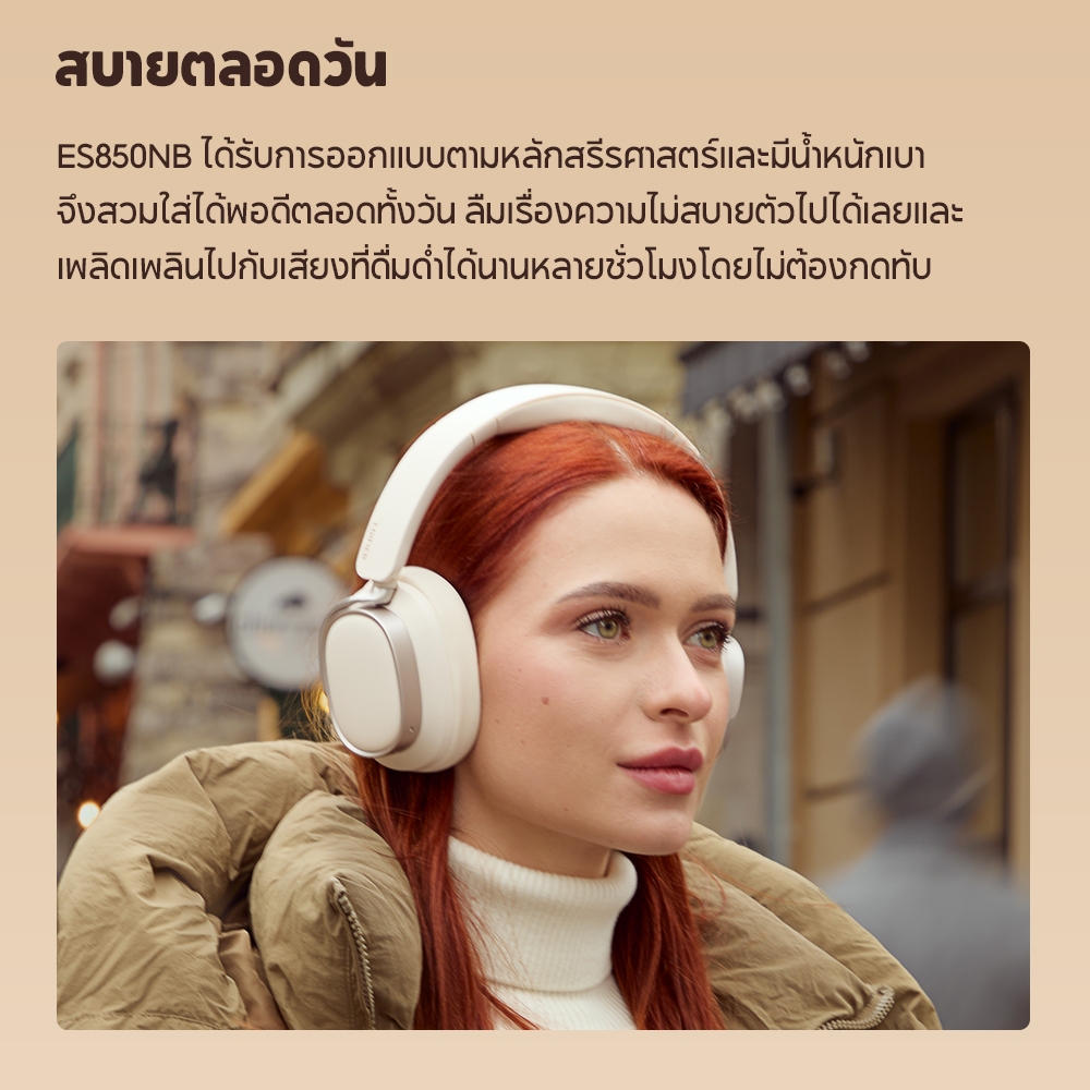 Edifier ES850NB หูฟังครอบหูไร้สายระบบ Hybrid ANC ลดเสียงรบกวนได้ถึง -45dB พร้อมบลูทูธ 5.4 ใช้งานต่อเนื่องสูงสุด 92 ชั่วโมง รองรับ Hi-Res Wireless Audio มาพร้อมไมโครโฟนในตัวและฟังก์ชันเชื่อมต่อ 2 อุ ปกรณ์พร้อมกัน