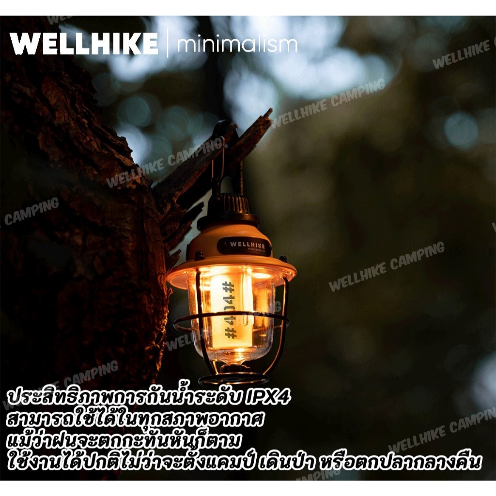 🚚สต็อกพร้อมในกรุงเทพ🚚 Wellhike ไฟแค้มป์ปิ้งวินเทจ ไฟ LED แบบชาร์จไฟได้ USB 4 โหมดแสง 360° หมุน2000มิลลิแอมป์ชั่วโมงแบตเตอรี่สําหรับเต็นท์ตั้งแคมป์ตั้งแคมป์
