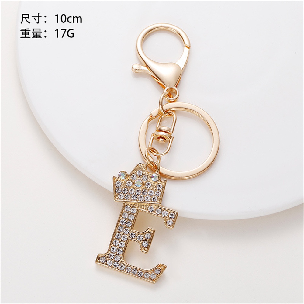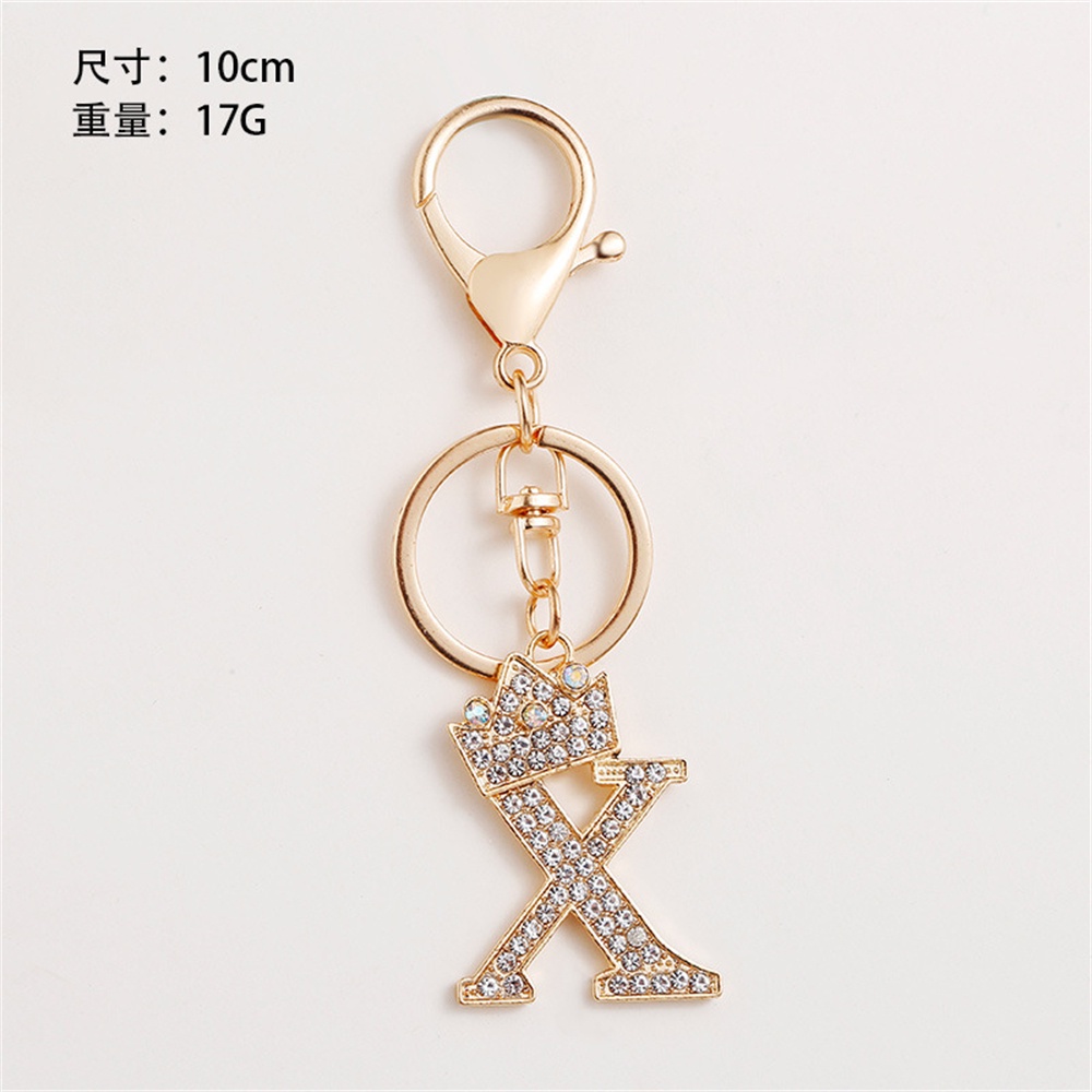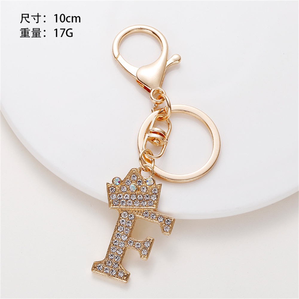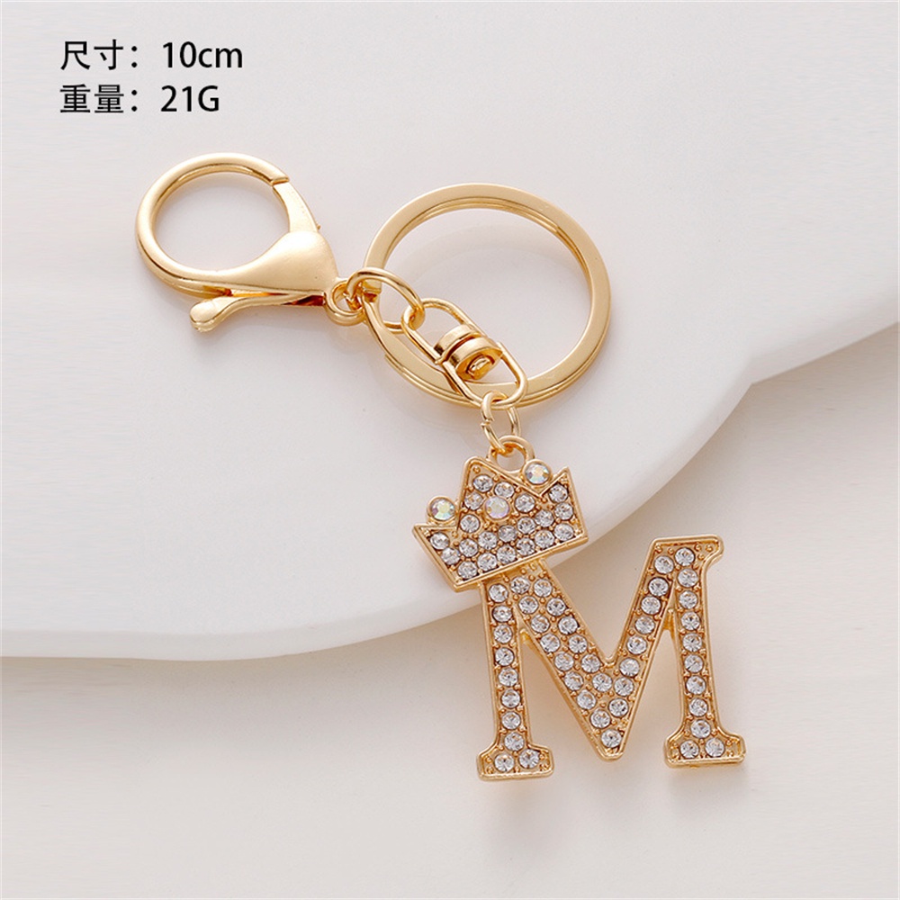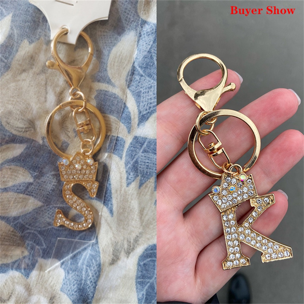 พวงกุญแจ จี้มงกุฎ ประดับเพชรเทียม 26 ตัวอักษร สีทอง สร้างสรรค์ เครื่องประดับ สําหรับผู้หญิง