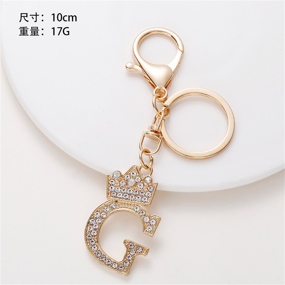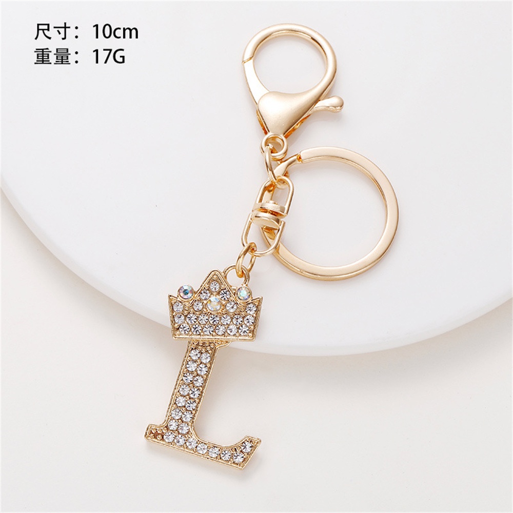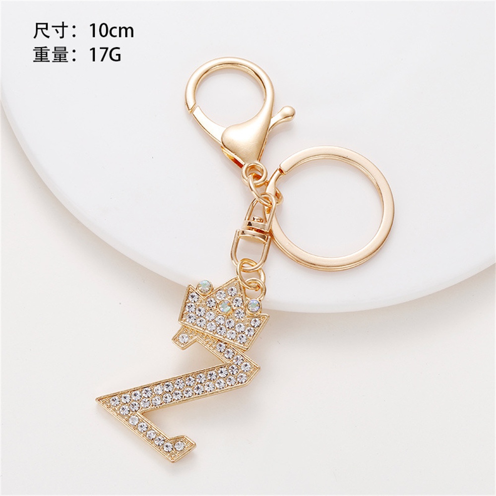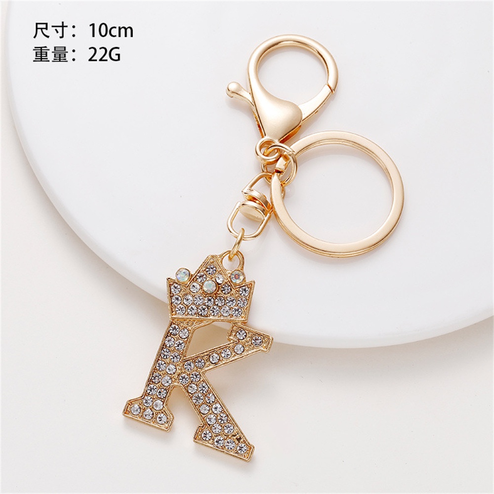 พวงกุญแจ จี้มงกุฎ ประดับเพชรเทียม 26 ตัวอักษร สีทอง สร้างสรรค์ เครื่องประดับ สําหรับผู้หญิง