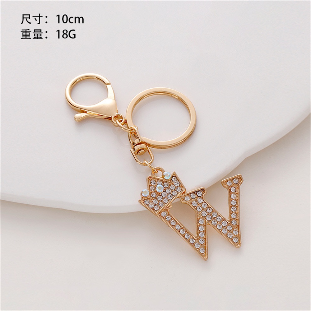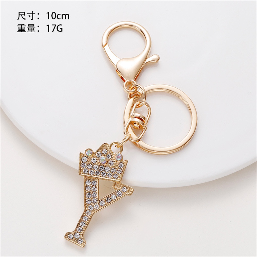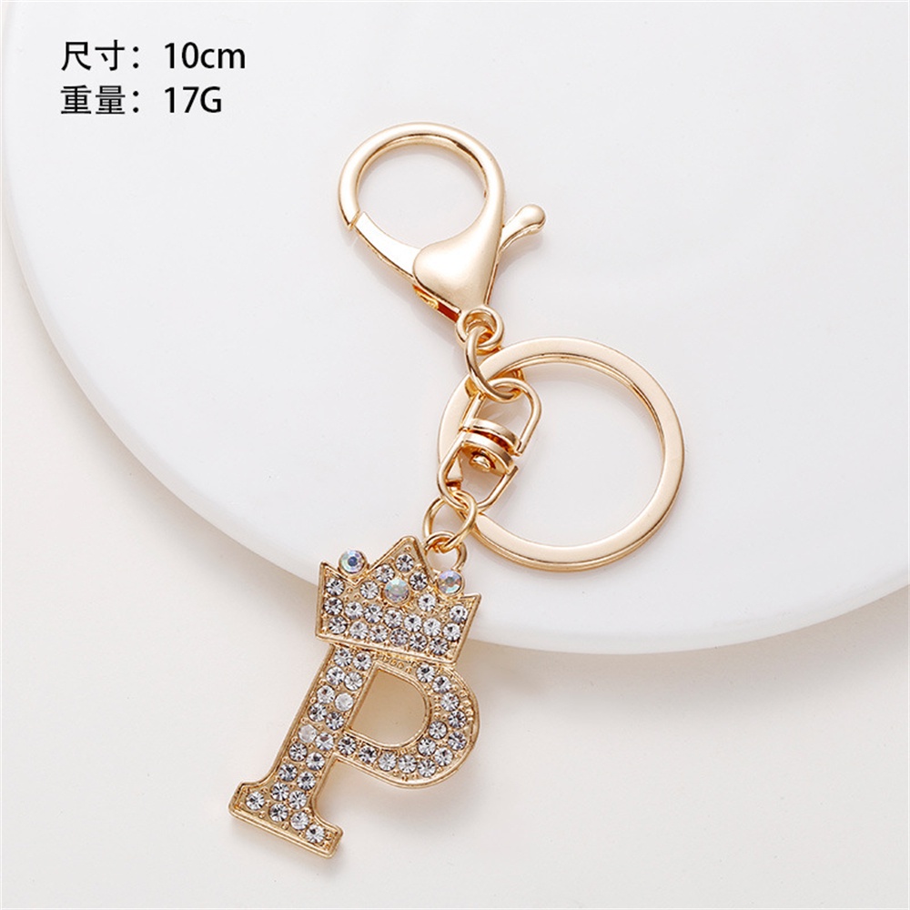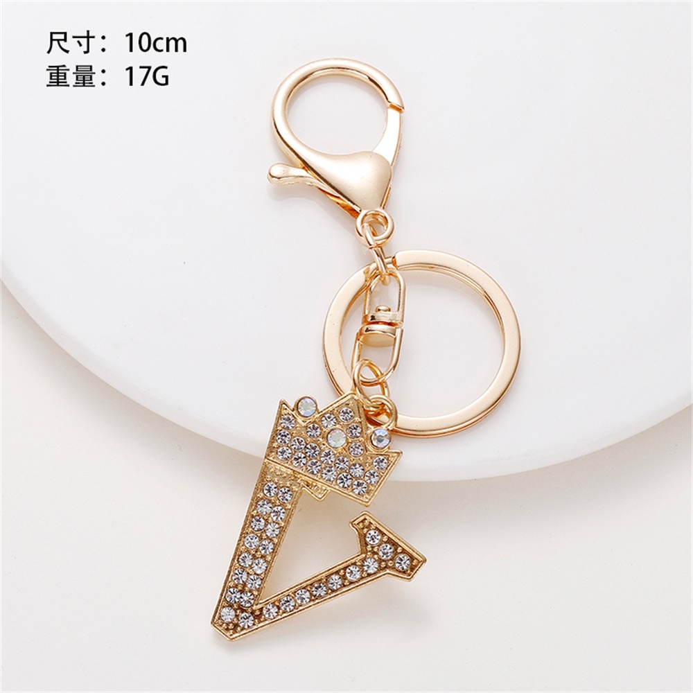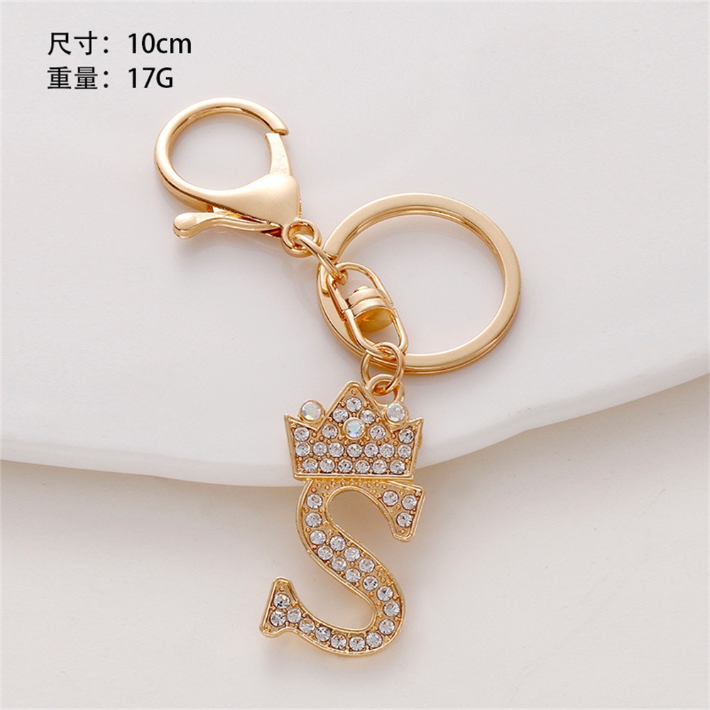 พวงกุญแจ จี้มงกุฎ ประดับเพชรเทียม 26 ตัวอักษร สีทอง สร้างสรรค์ เครื่องประดับ สําหรับผู้หญิง