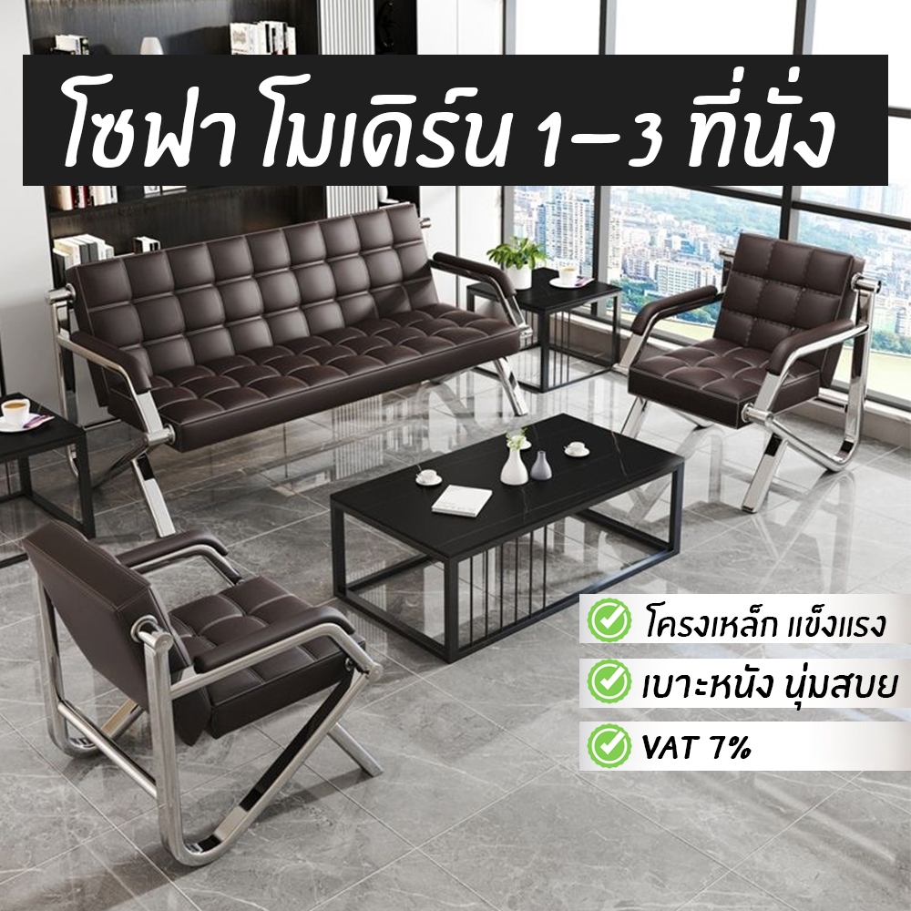 ชุดโซฟาโมเดริน์ ชุดโซฟา 1-3 ที่นั่ง พร้อมโต๊ะหิน และเก้าอี้ โซฟาทางการ โซฟาสีดำ ขาเหล็ก แข็งแรง สวย หรู โซฟาสำนักงาน