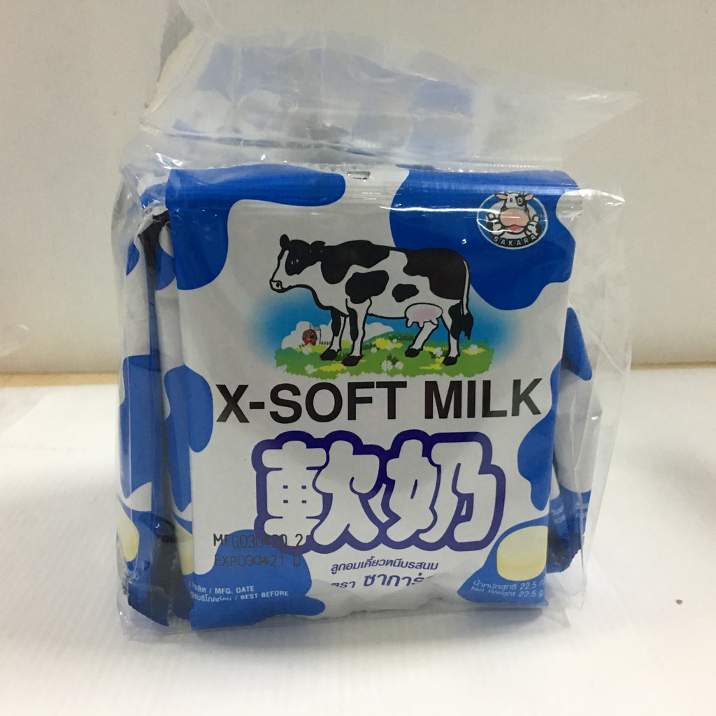 Sakara Milk Flavoured Soft Chewy Candy ลูกอมเคี้ยวหนึบรสนม ตรา ซาการ่า 22.5 กรัม x 12 ซอง