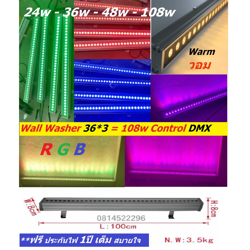 **Newใหม่* Wall washer 36w 48w 60w 108wRGB ฟรี**รีโมท ทุกชิ้น Warm แสงวอม ไฟส่องตึก ไฟน้ำตก IP68 คุณภาพดี งานสเปกโครงการ