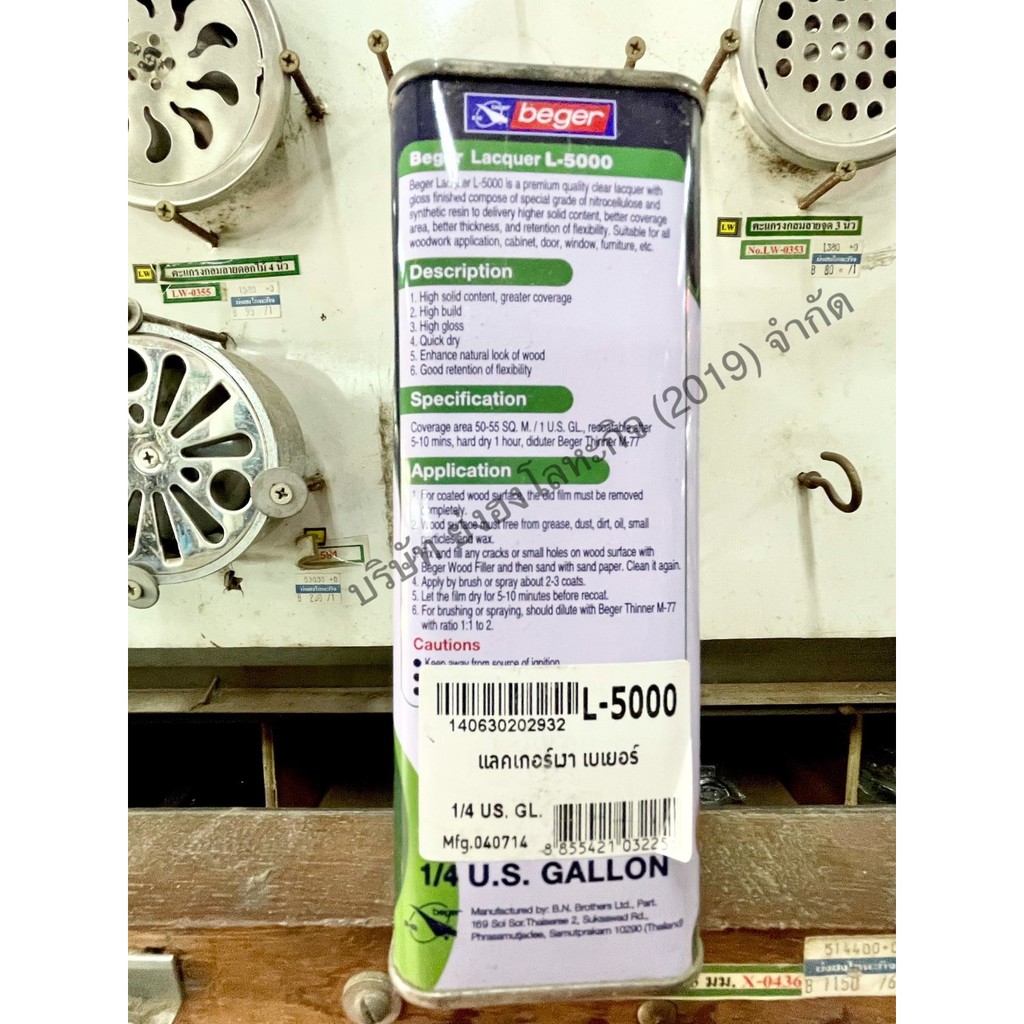 แลคเกอร์ เบเยอร์ L-5000 ชนิดเงา แลคเกอร์ด้าน L-5500 ขนาด 1/4 กล. (0.946 ลิตร) BEGER LACQUER
