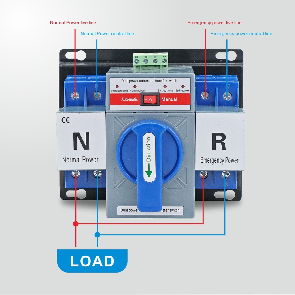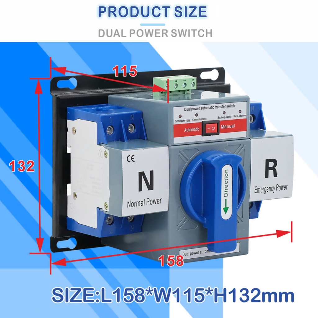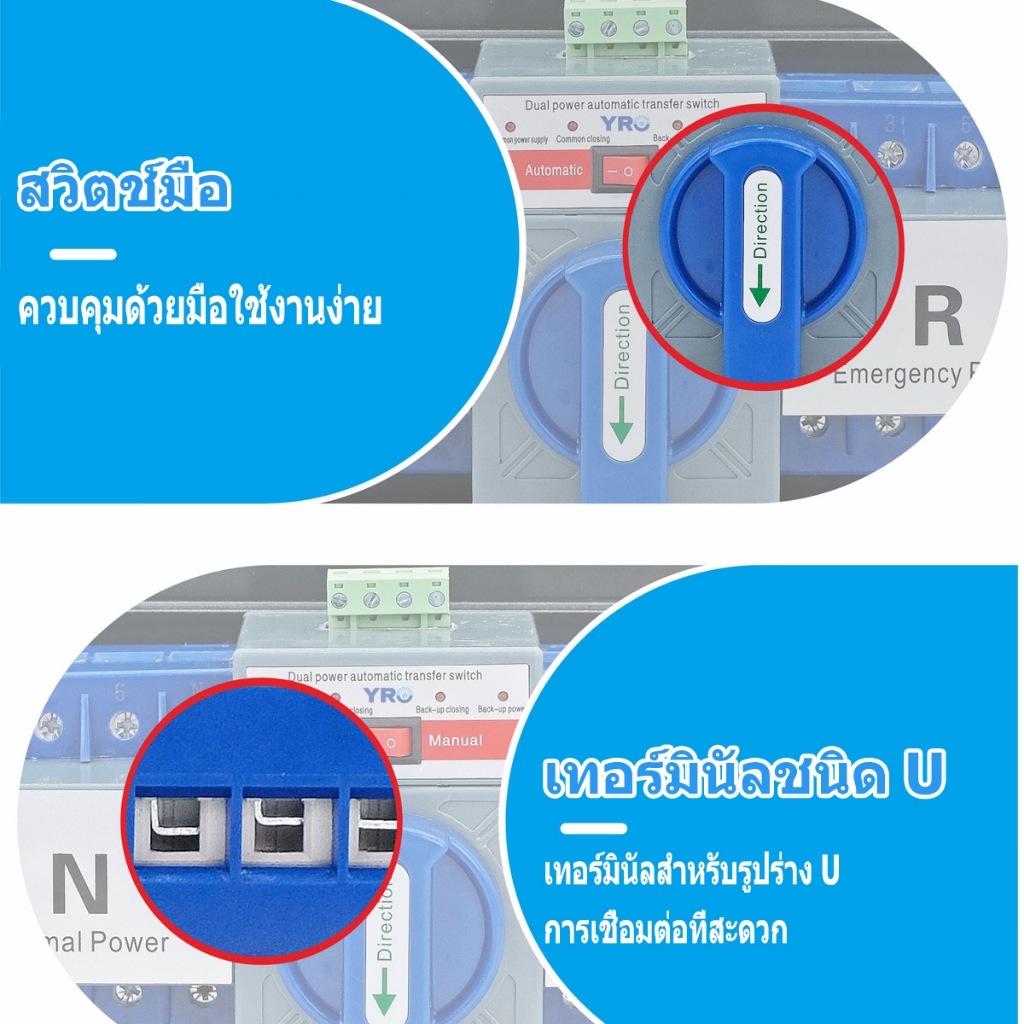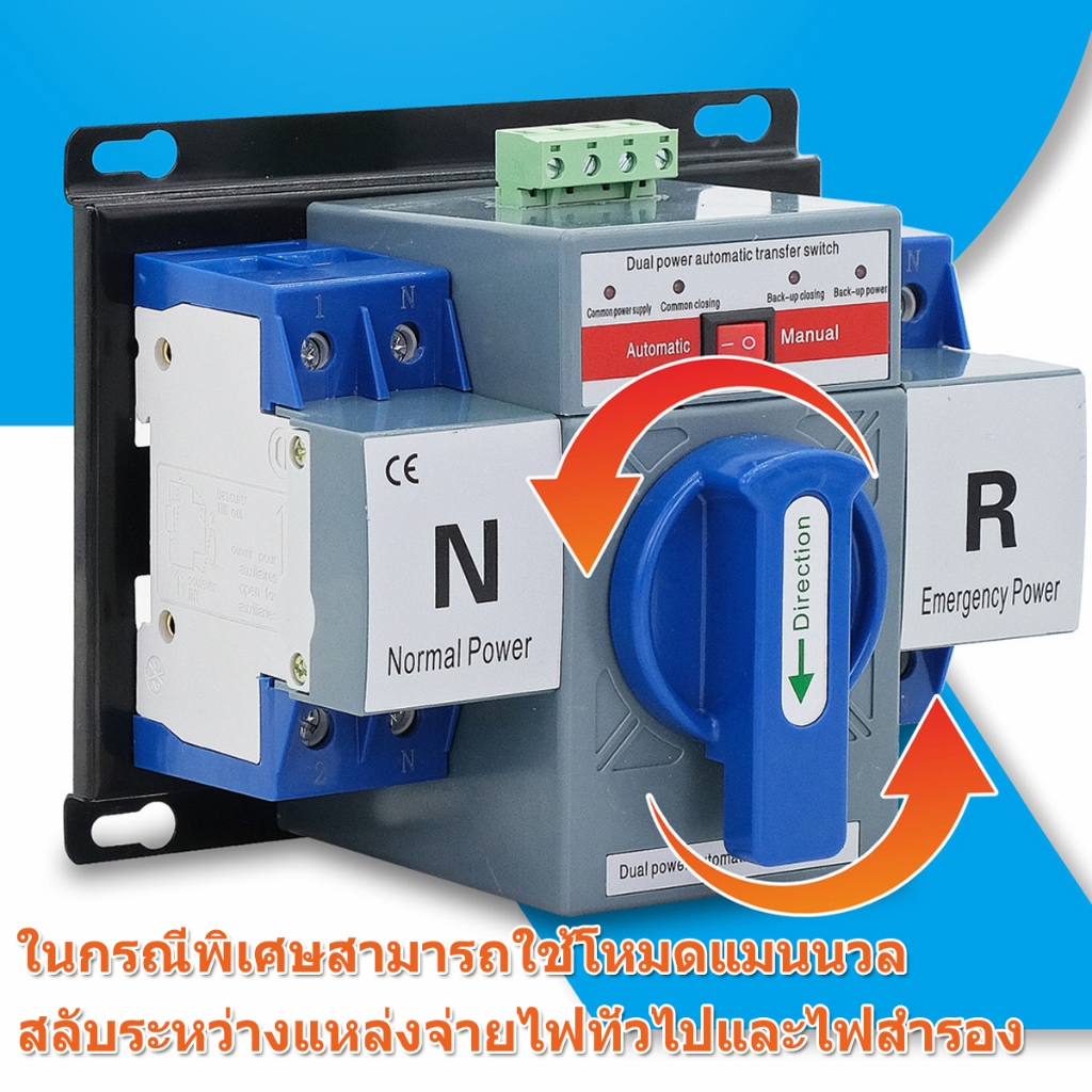 ATS ตัวสลับไฟ 2P 63A 230V MCB สวิตซ์สลับแหล่งจ่ายไฟชนิด สำหรับใช้งานสลับแหล่งจ่าย ไฟ งานโสำรองไฟ พิกัดกระแส