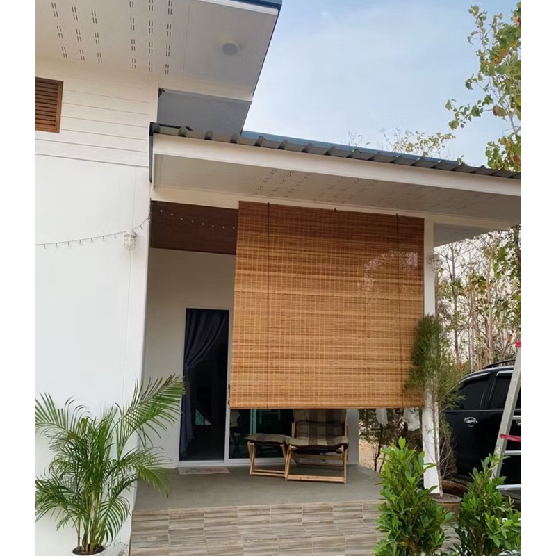มู่ลี่ไม้ไผ่ ไม้แบนสีคาร์บอนไนซ์ รุ่นน้ำชา ม่านไม้ไผ่ ม่านกลางแจ้ง ทอแน่น กันแดดกันฝน