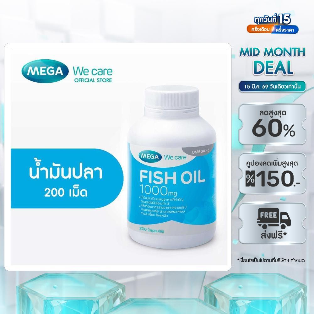 MEGA We care เมก้าวีแคร์ FISH OIL 1000 MG. (200 's) น้ำมันปลา 1000 มก. 200 เม็ด (F2200M)