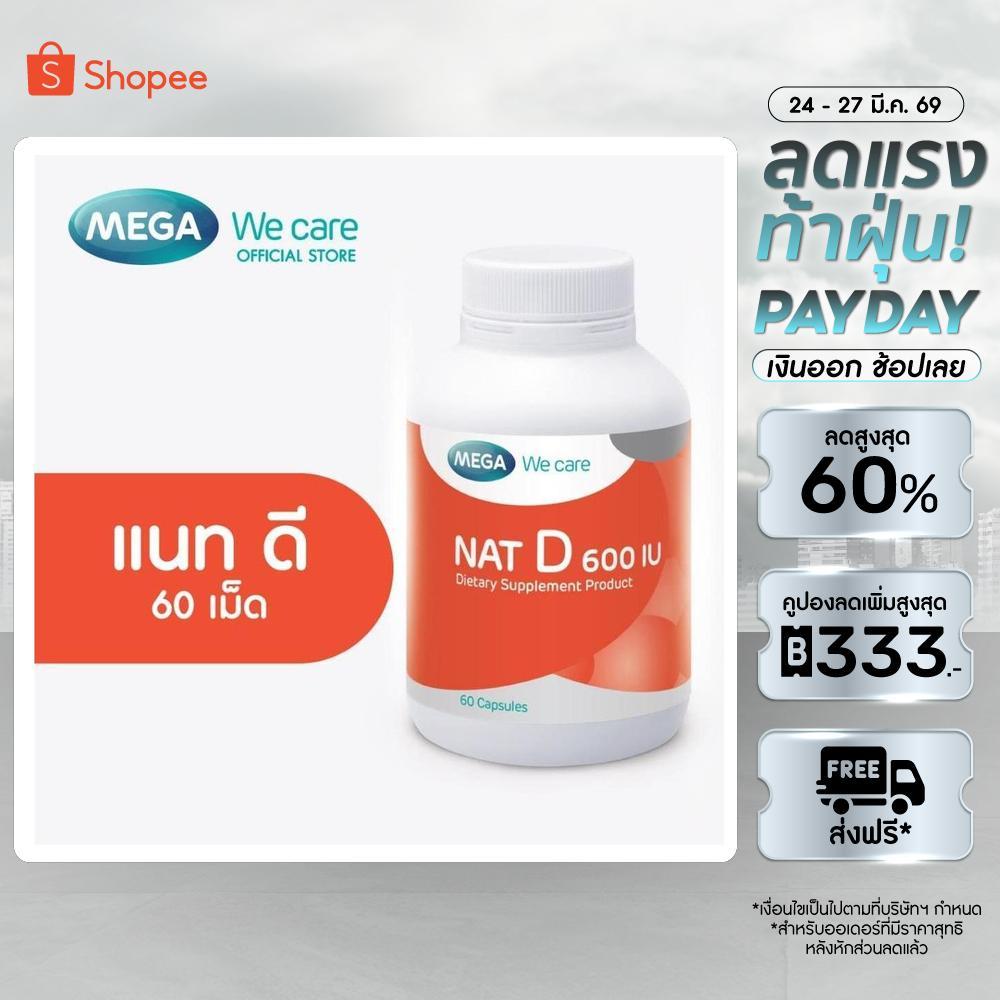 MEGA We care เมก้าวีแคร์ NAT D 600 IU (60 's) แนทดี 600 IU 60 เม็ด (ND660M)