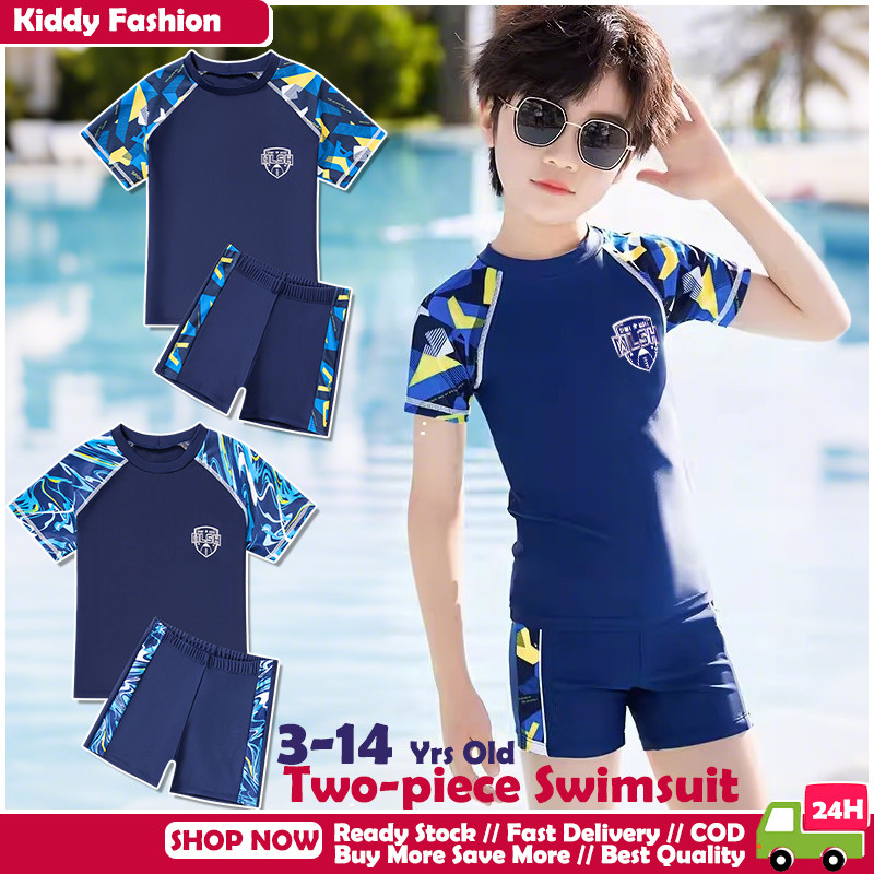 [BANGKOK SHIPPING] ชุดว่ายน้ําทูพีชสําหรับเด็กผู้ชาย 3-14 Yrs ชุดว่ายน้ําแขนสั้นน้ําหนักเบาเก่าสําหรับเด็ก