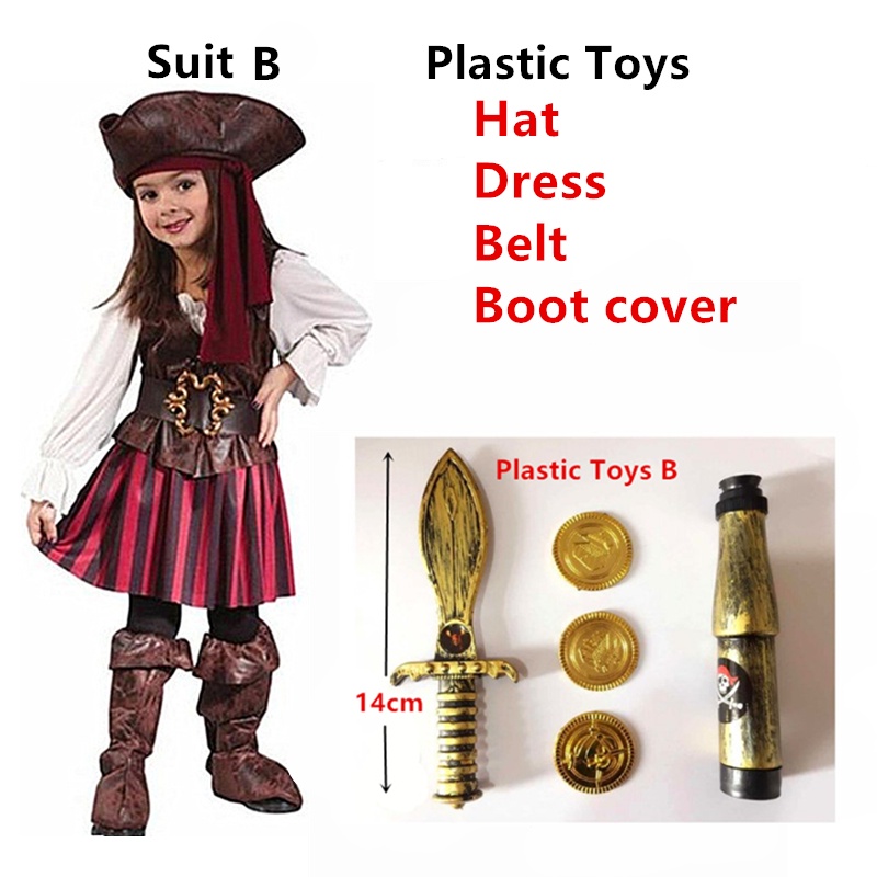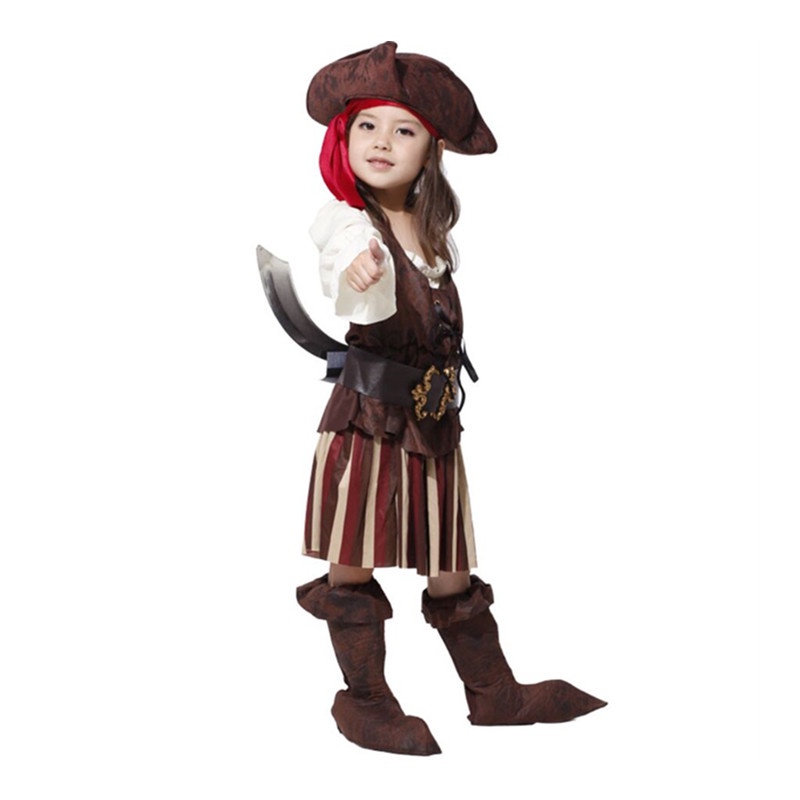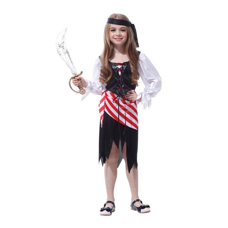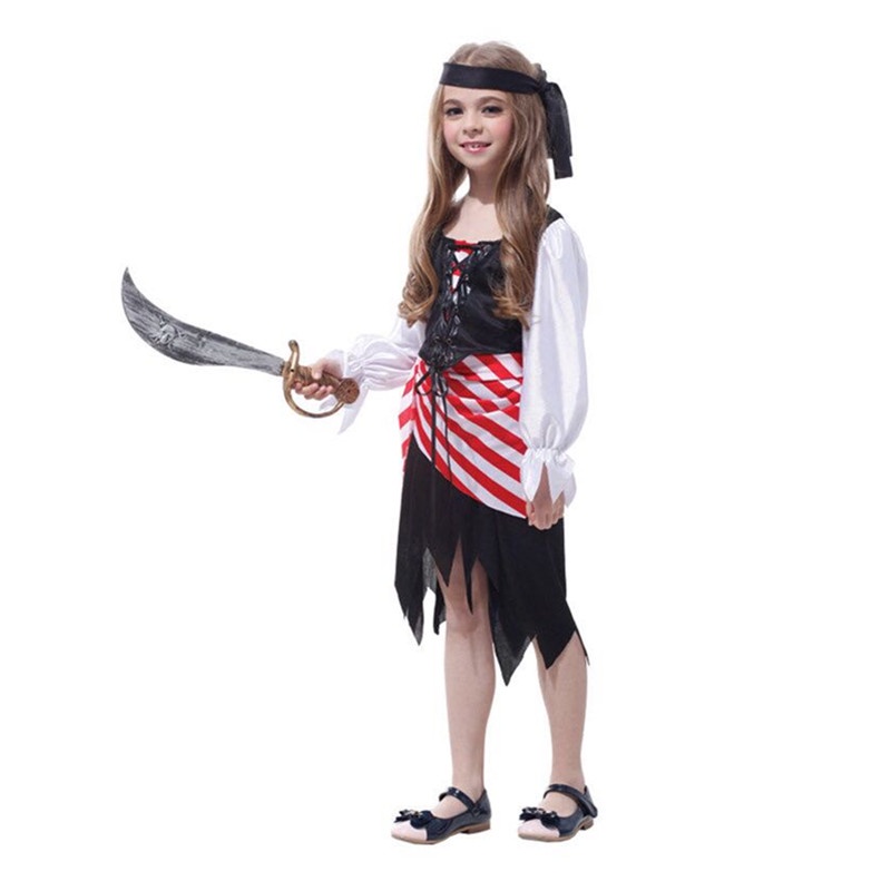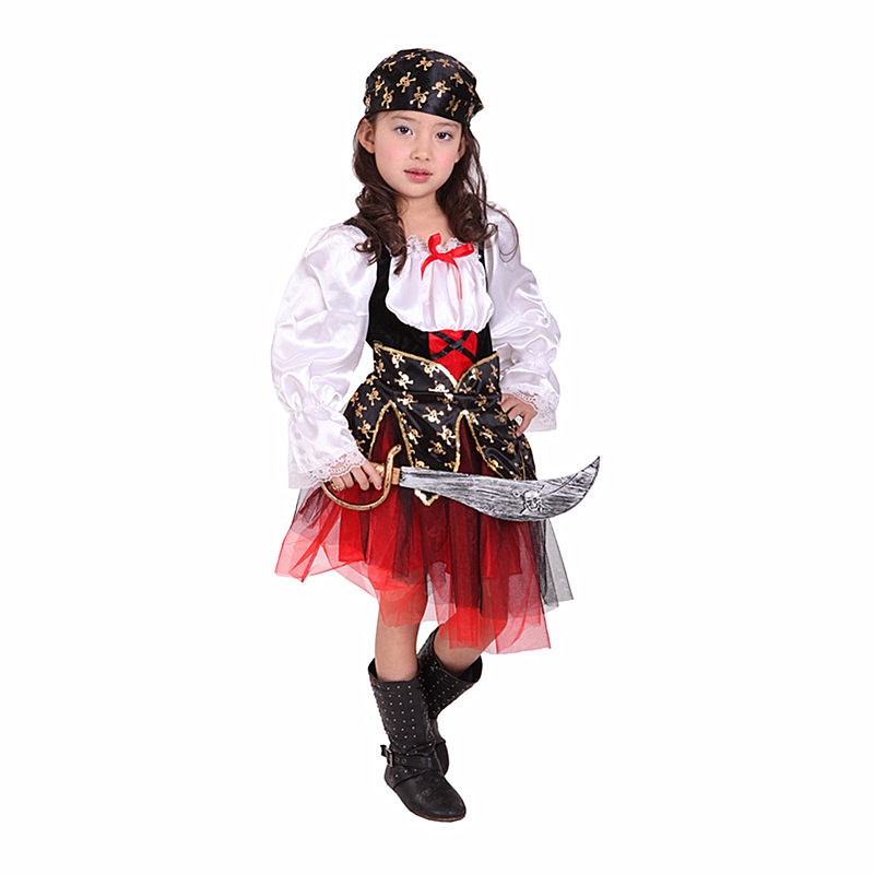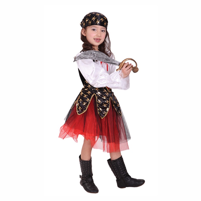 เสื้อผู้หญิง เด็ก ผู้หญิง สาวโจรสลัดชุดเจ้าหญิงเครื่องแต่งกายคอสเพลย์อลิซแคริบเบียนโจรสลัดกัปตันเด็กวันเกิดเทศกาลวันปีใหม่พรรคประสิทธิภาพชุดเต้นรํา