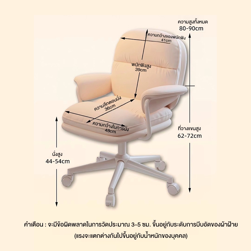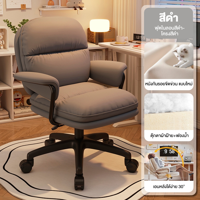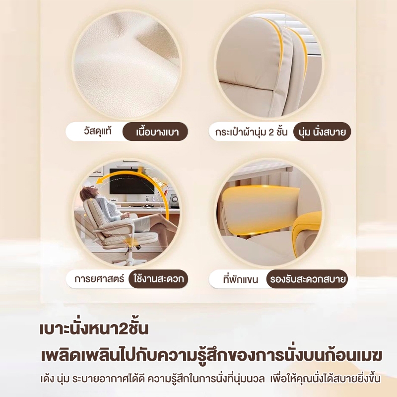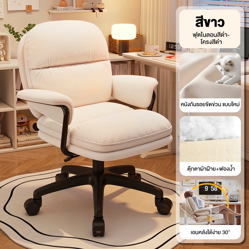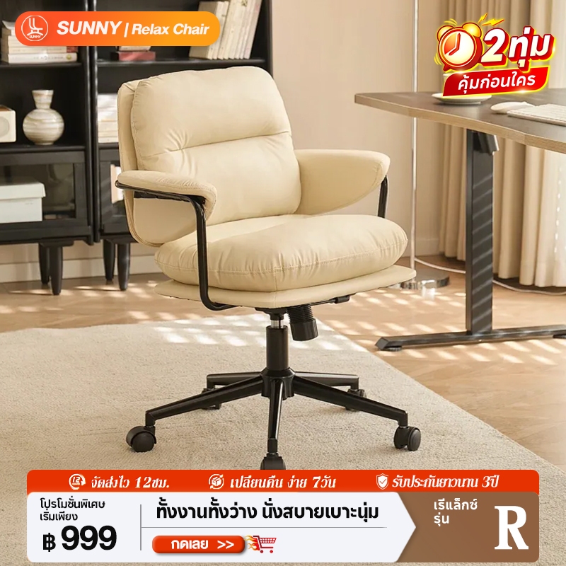 SUNNY เก้าอี้คอม เก้าอี้ทำงาน เบาะรองนั่ง 2 ชั้น หนา 14 มม. ฟองน้ำอัดคุณภาพสูง พื้นผิวป้องกันคราบสกปรก ทำความสะอาดง่าย