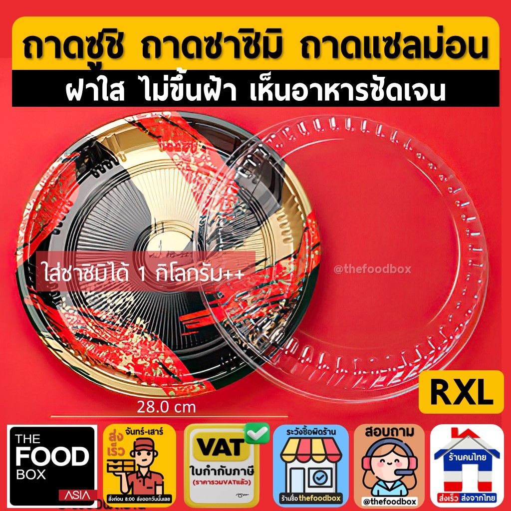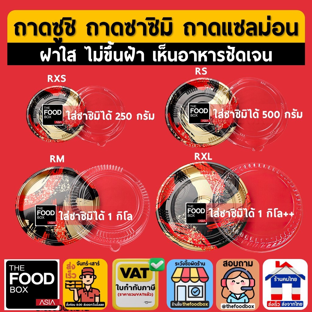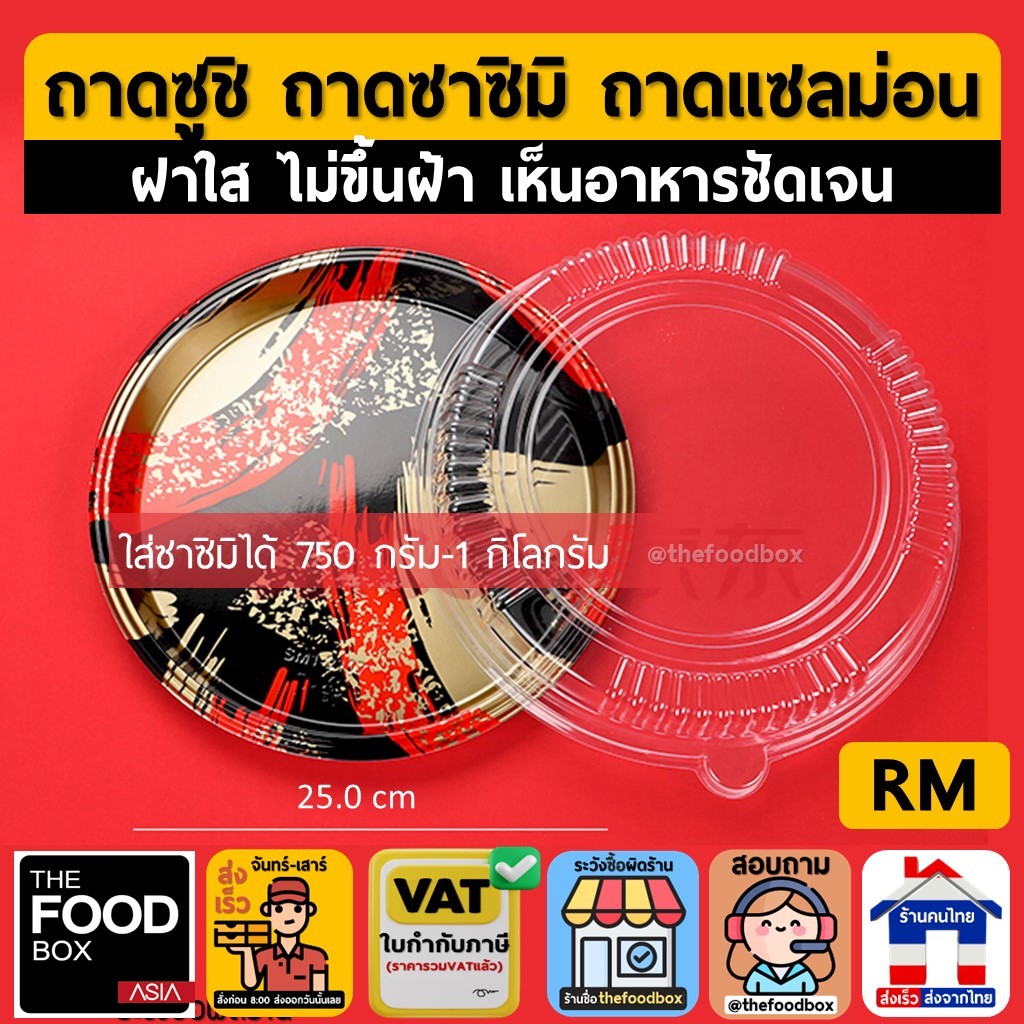 (ถาดพร้อมฝา25ชุด) ถาดซูชิกลม ส้มตำ แซลม่อน ซาซิมิ ลายญี่ปุ่น thefoodbox