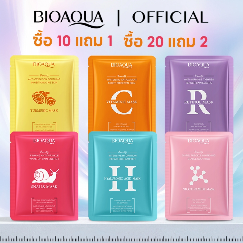ซื้อ 10 แถม 1 (รวม 11 แผ่น) BIOAOUA วิตามินซี / นิโคติน / เรตินอล / กรดไฮโดรยูริก / ต่อต้านออกซิเจนไวท์เทนนิ่งเพิ่มความชุ่มชื้นหน้ากากให้ความชุ่มชื้น