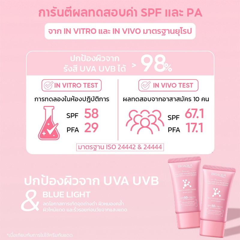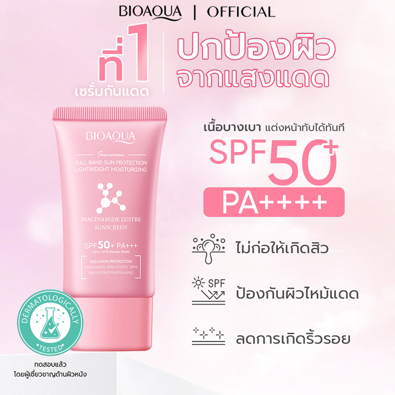 BIOAOUA Niacinamide Brightening Sunscreen SPF50+ PA+++ ไบรท์เทนนิ่ง กันแดดหน้า ครีมกันแดด เนื้อบางเบา ไม่เป็นคราบ ลดความหมองคล้ำ