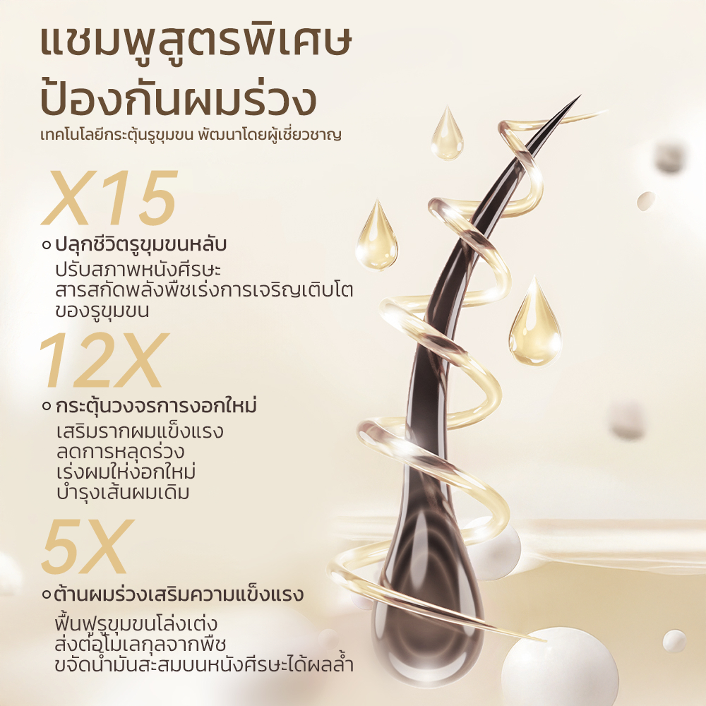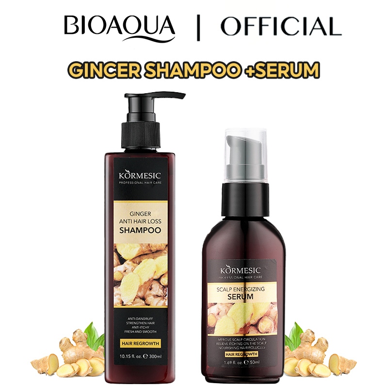แชมพูลดผมร่วง BIOAOUA Ginger Shampoo Set ยาสระผมเร่งผมยาว เพิ่มวอลลุ่ม Anti-Hairloss Shampoo 300ML