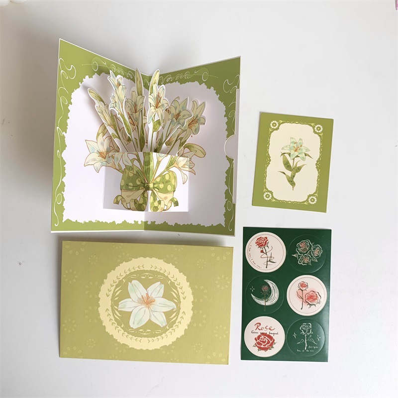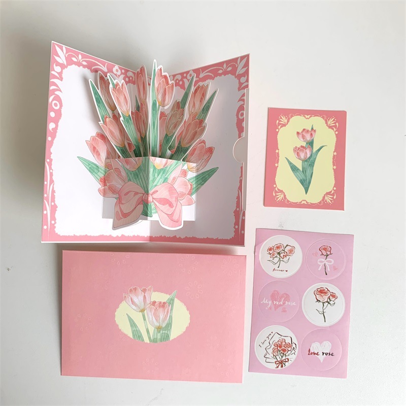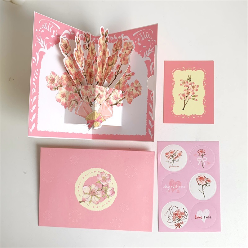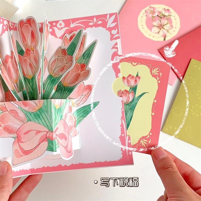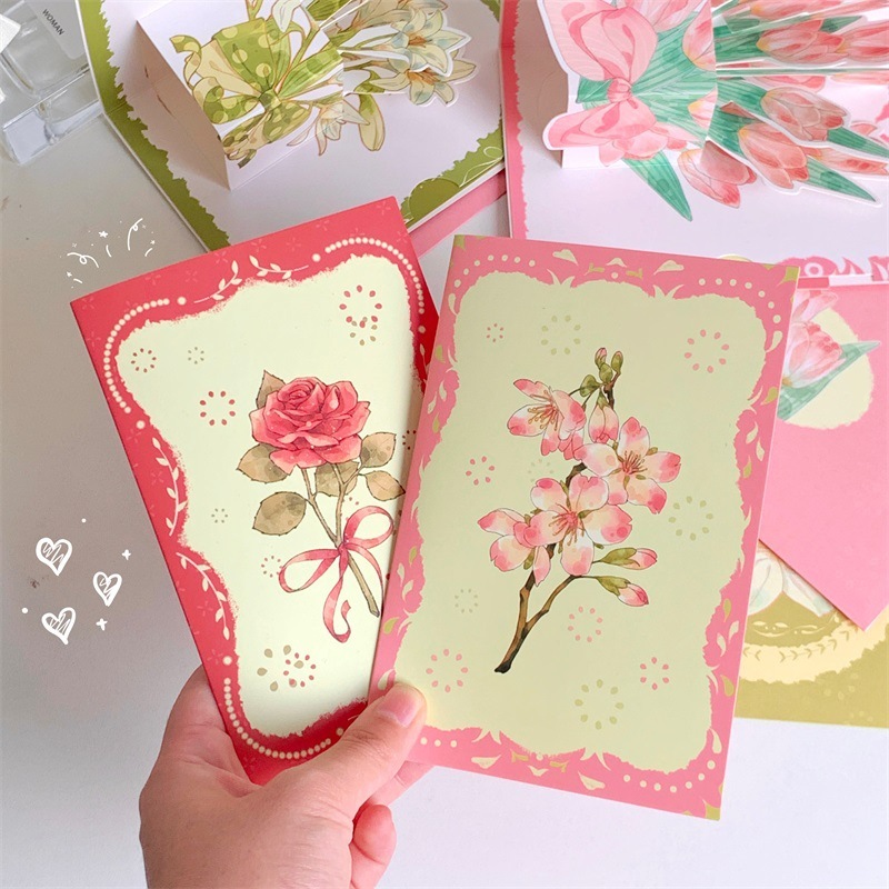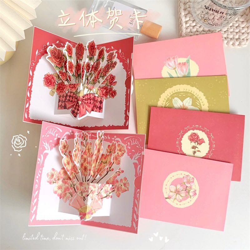 พร้อมส่ง การ์ดอวยพร การ์ดวันเกิด 3D สามมิติ ดอกไม้ มี4แบบ การ์ดขอบคุณ การ์ดดอกไม้ Birthday card พร้อมซองจดหมาย+สติกเกอร์