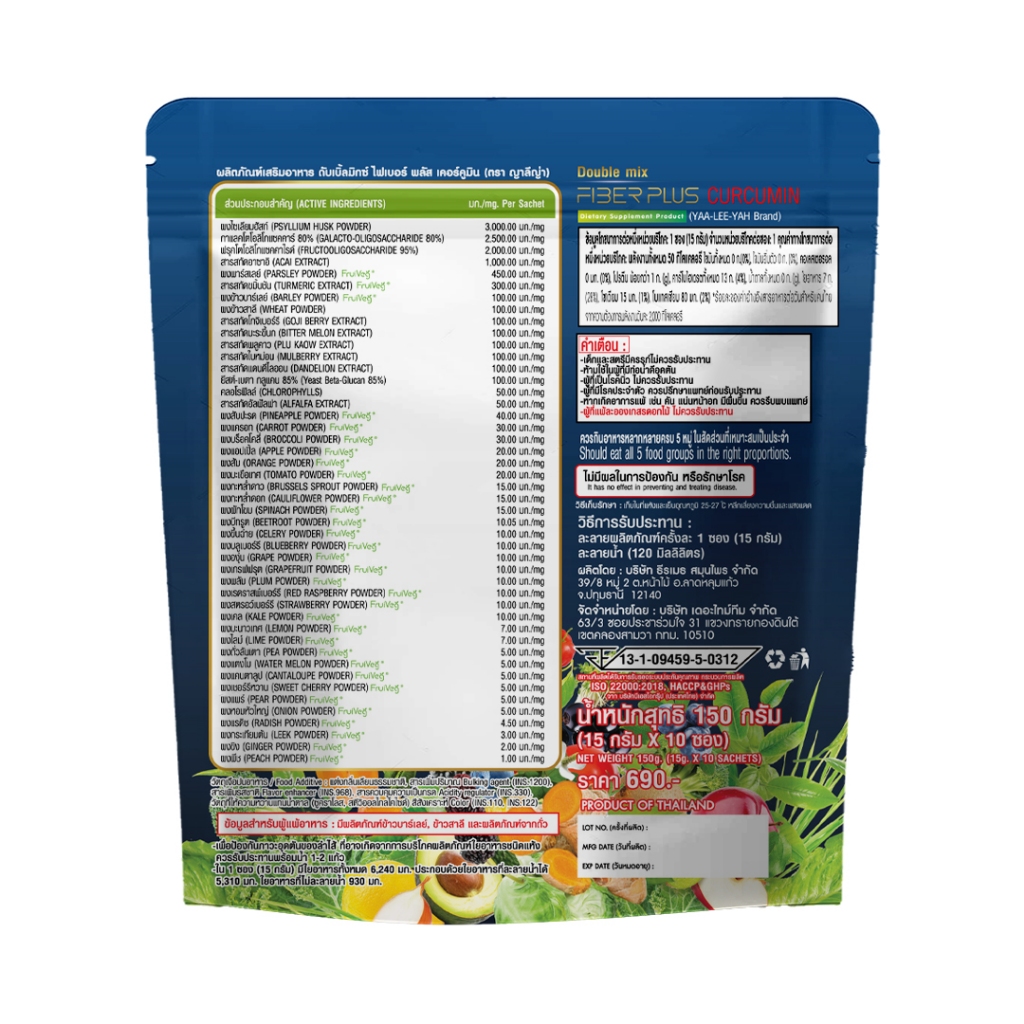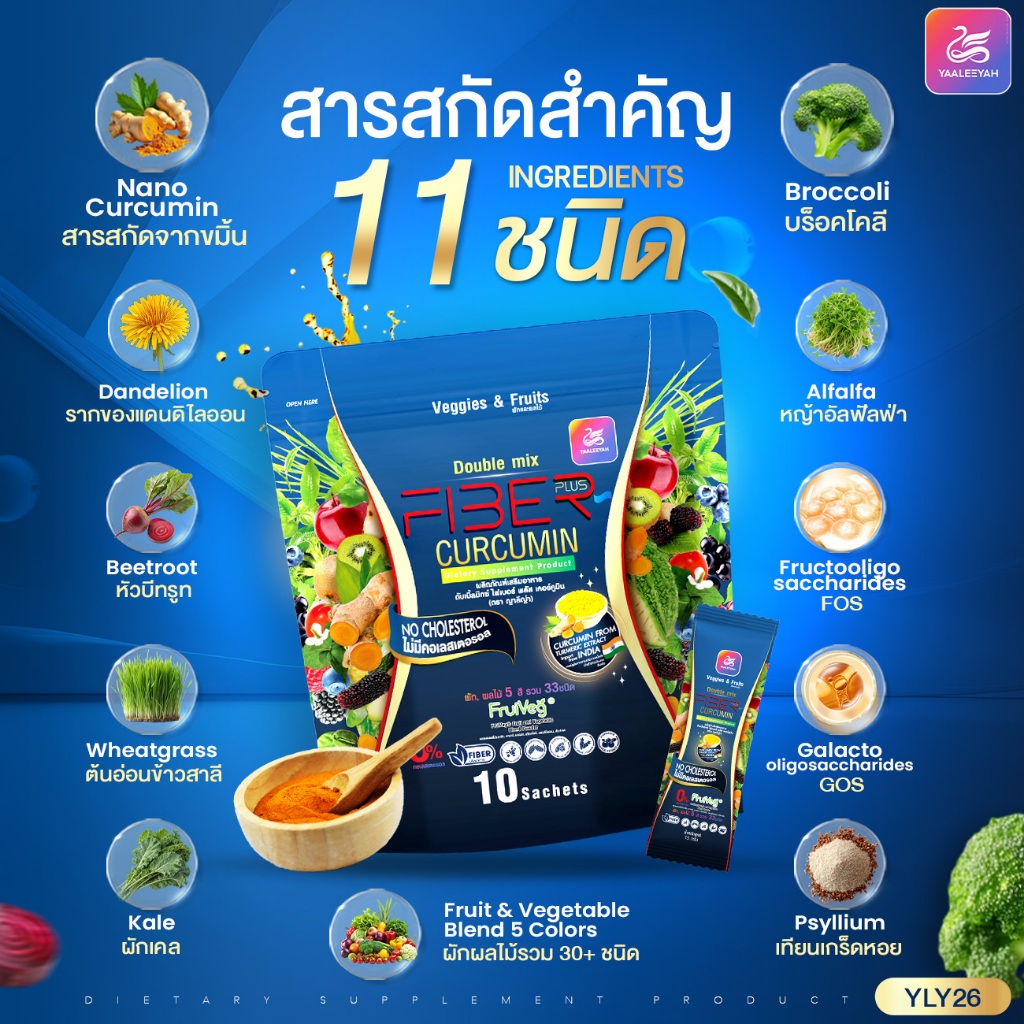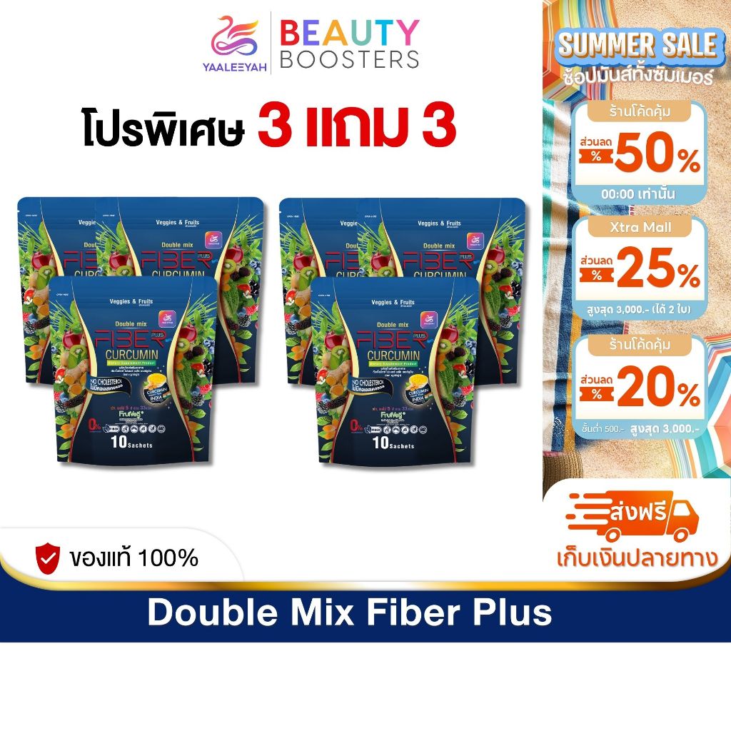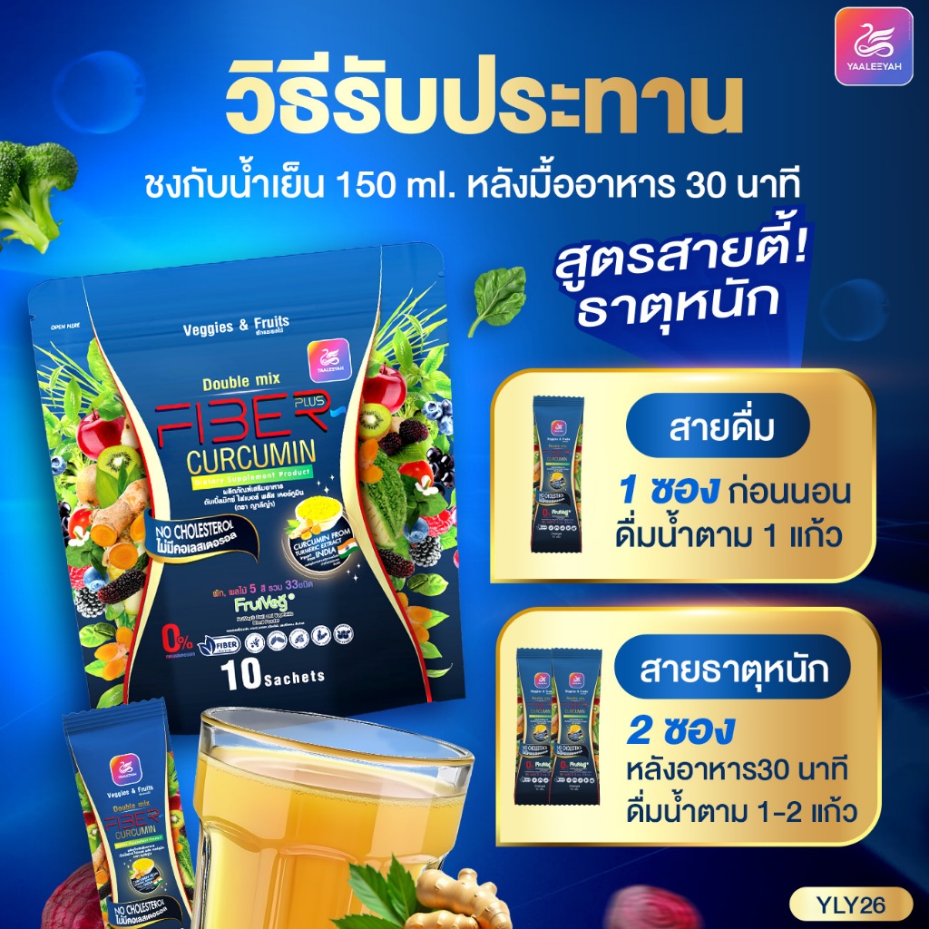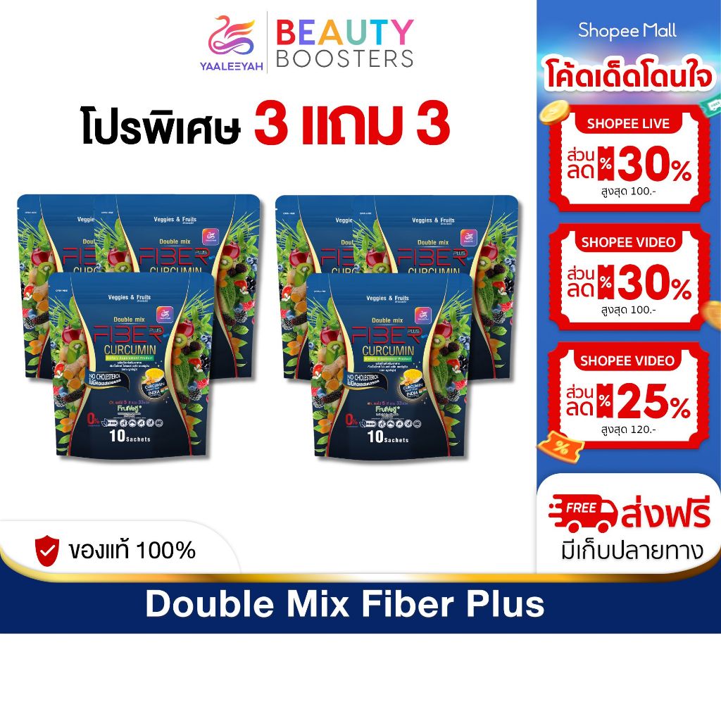 โปร 3 แถม 3 Yaaleeyah Fiber Plus Curcumin ญาลีญ่า ดับเบิ้ลมิกซ์ ไฟเบอร์ พลัส เคอร์คูมิน