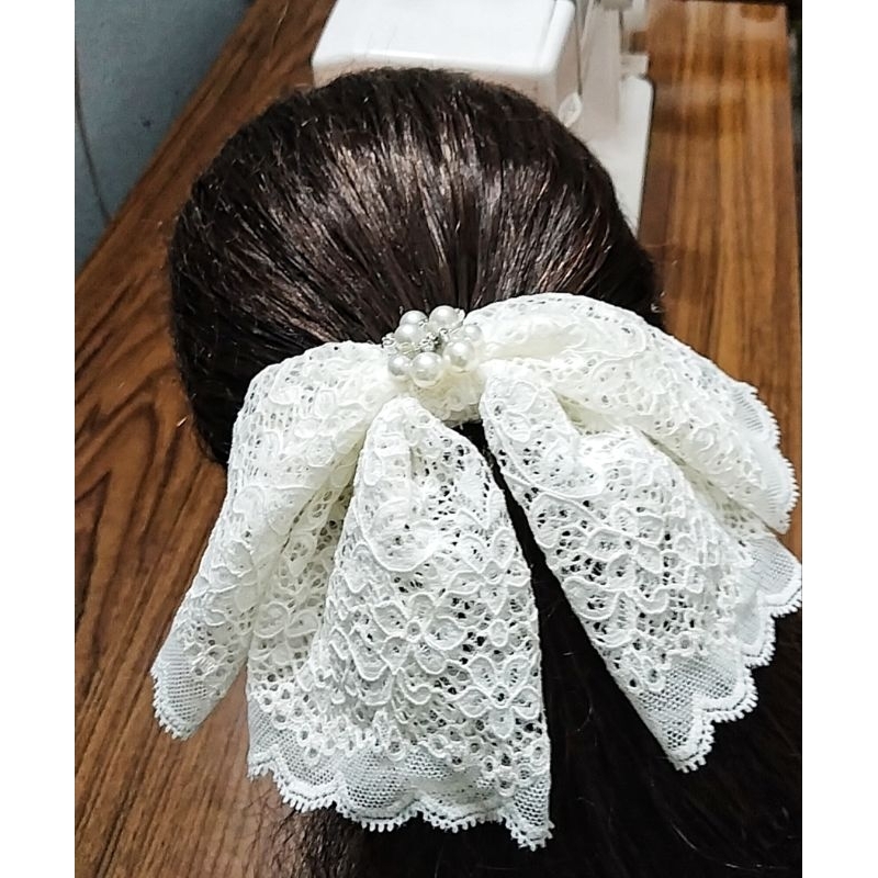 โบว์ติดผมกิ๊บติดผมผ้าลุกไม้ขนาดใหญ่