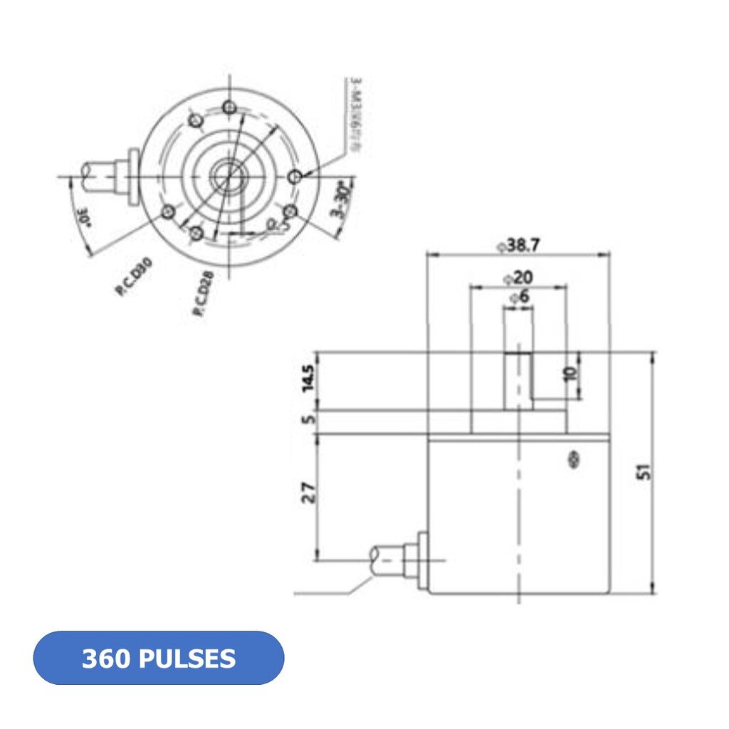 ND078 โรตารี่ เอ็นโค้ดเดอร์ DC5-24V 360 Pulses Incremental Photoelectric Rotary Encoder E38S6G5-360B-G24N 360P/R