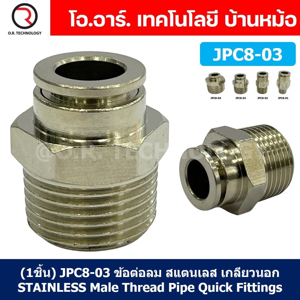JPC ข้อต่อลมสแตนเลสเกลียวนอก ข้อต่อลมเกลียวนอก ตรง ข้อต่อลม สแตนเลส STAINLESS Male Thread Straight Quick Connector Fi...