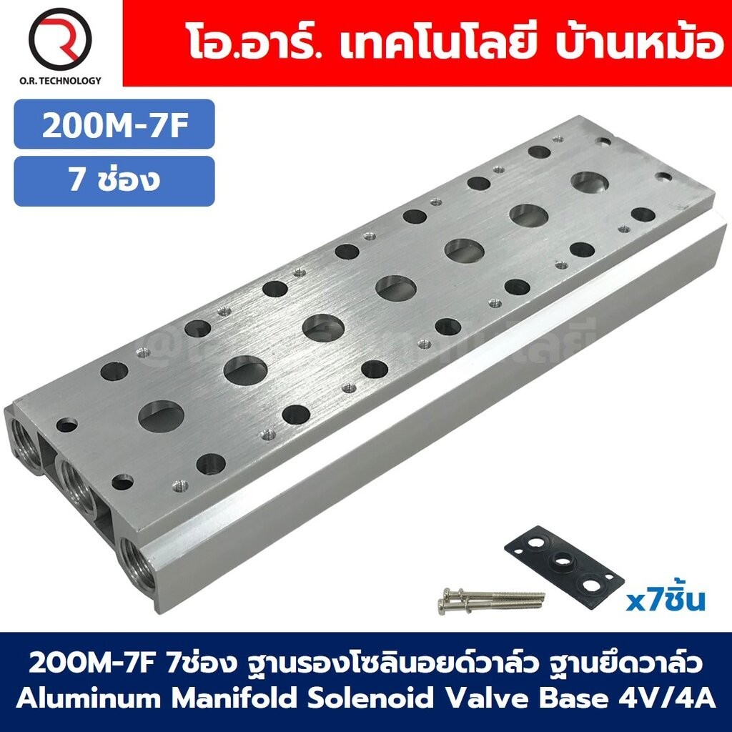 200M-7F 7ช่อง ฐานรองโซลินอยด์วาล์ว แมนนิโฟล์ด Aluminum Manifold Solenoid Valve Base 4V/4A ฐานวางโซลินอยด์ ฐานยึดวาล์ว
