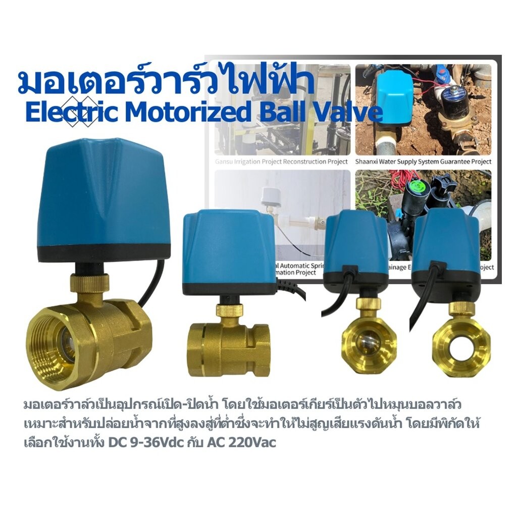 วาล์วไฟฟ้า วาล์วมอเตอร์ไฟฟ้าทองเหลือง Brass Electric Ball Valve Motorized วาล์ทองเหลือง บอลวาล์วไฟฟ้า G1/2"-G2" DN15-...