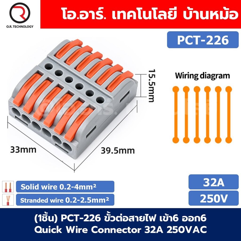 PCT ขั้วต่อสายไฟ ตัวต่อสายไฟ เต๋าต่อสาย Quick Wire Connector 32A 250VAC Terminal Connector Wire ข้อต่อสายไฟ Cable Joi...