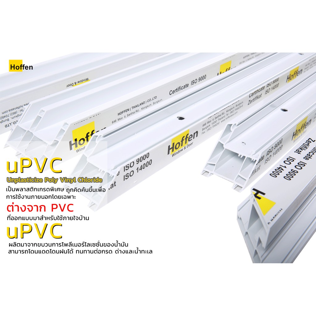 HOFFEN หน้าต่างบานเลื่อน หน้าต่างกระจกเขียวใส uPVC รุ่น Trendy วงกบ 6 ซม.