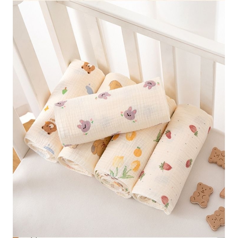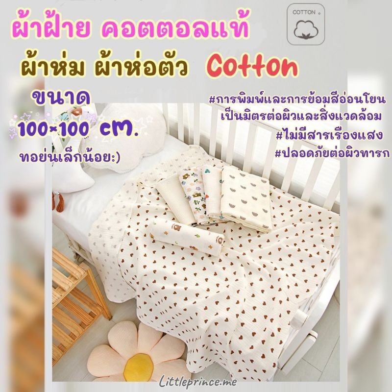 ผ้ามัสลิน ฝ้าย คอตตอลแท้ ออร์แกนิค เนื้อนุ่ม ผืนใหญ่ Cotton ทอย่น ขนาด100×100 cm. พร้อมส่ง ‼️เกรดดี ผ้าห่ม ผ้าห่อตัวเด็ก