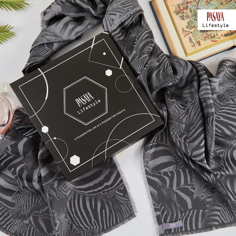 PASAYA ผ้าพันคอ - SILK COLLAGEN - ม้าลาย (90x90 cm.)