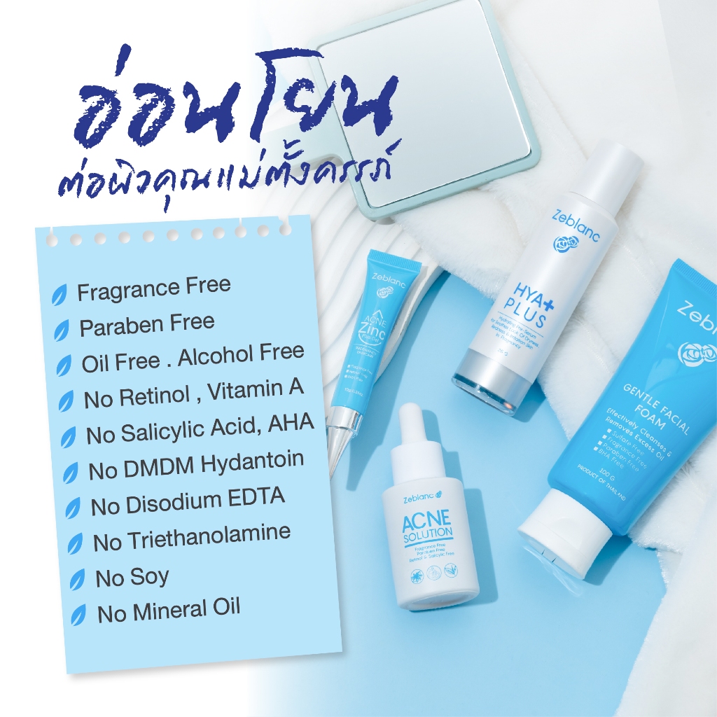 Zeblanc Set ดูแลสิวคนท้อง 4 ขั้นตอน ผิวมัน