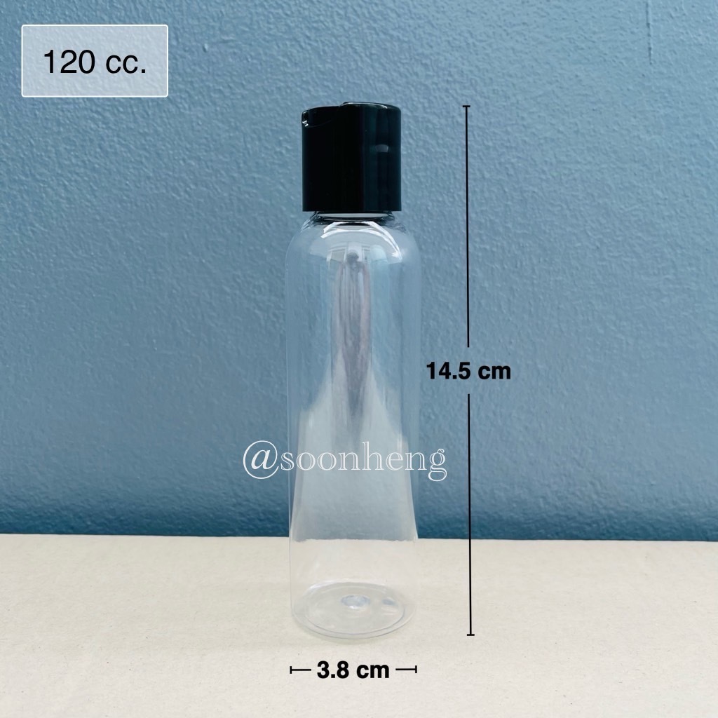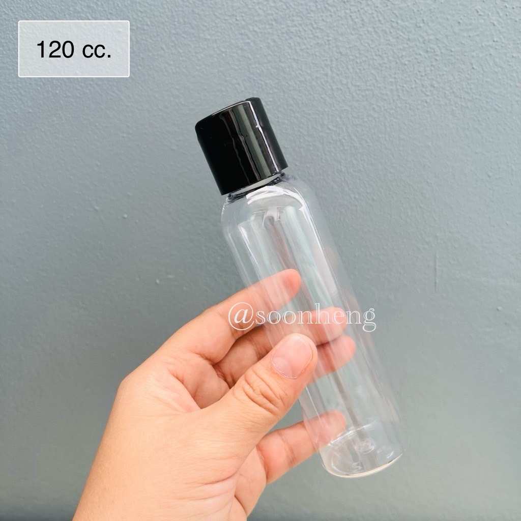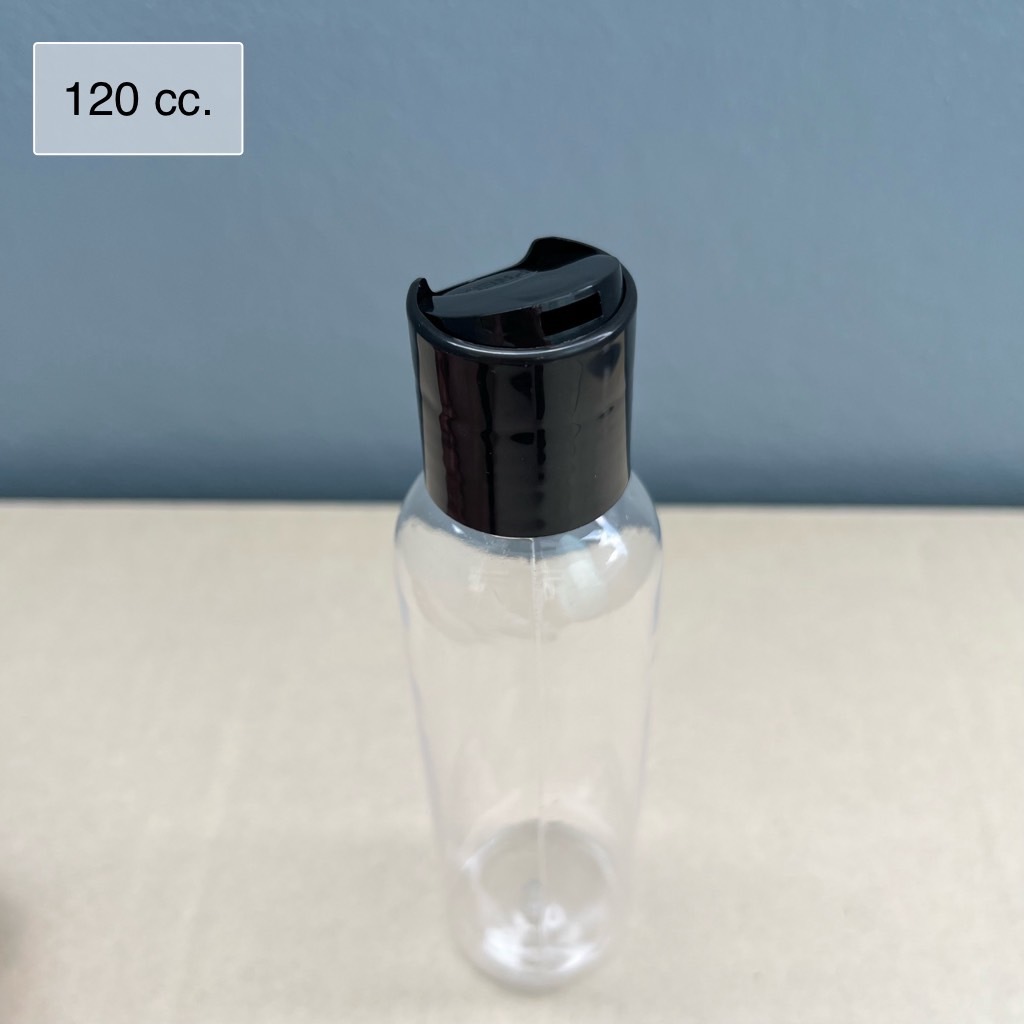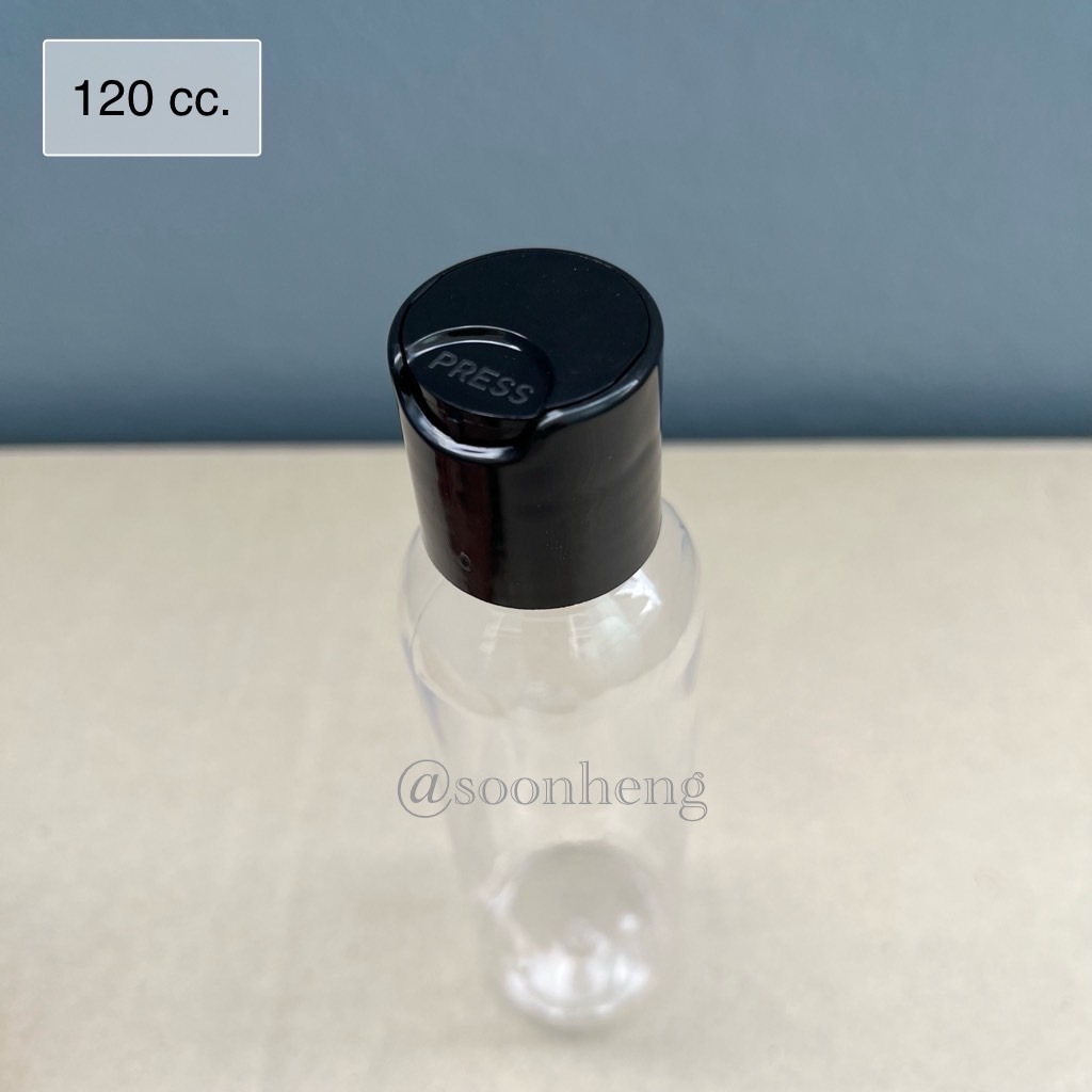 ขวดเพท 120 cc กลม สีใส ปาก 24 มม. พร้อมฝาเพรส ฝากด