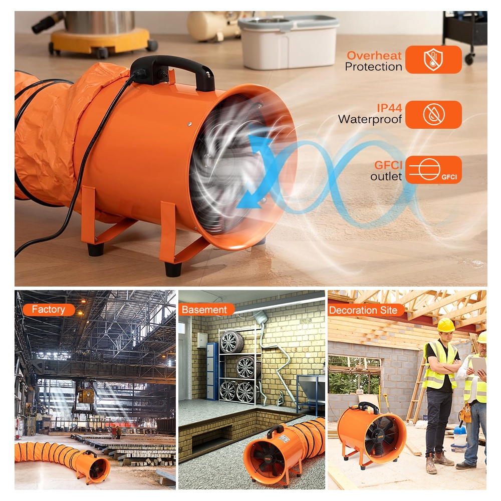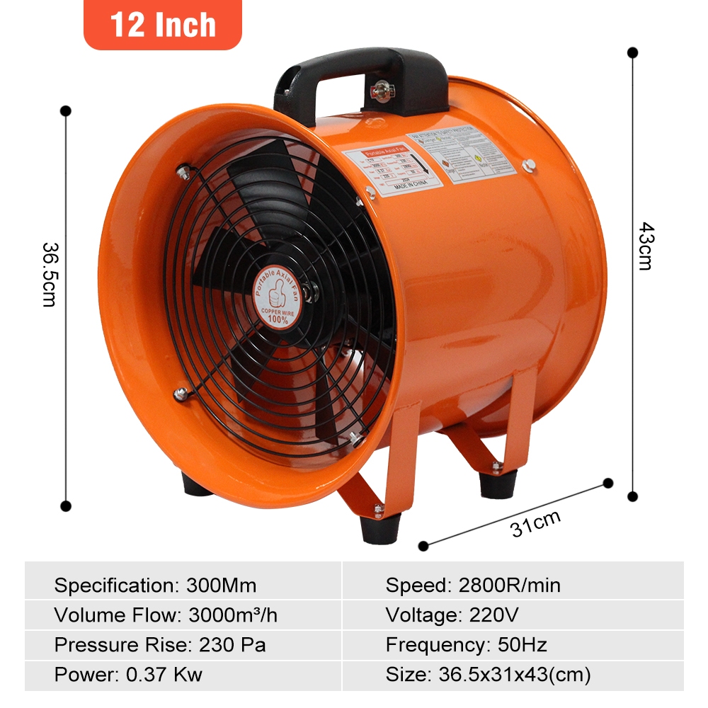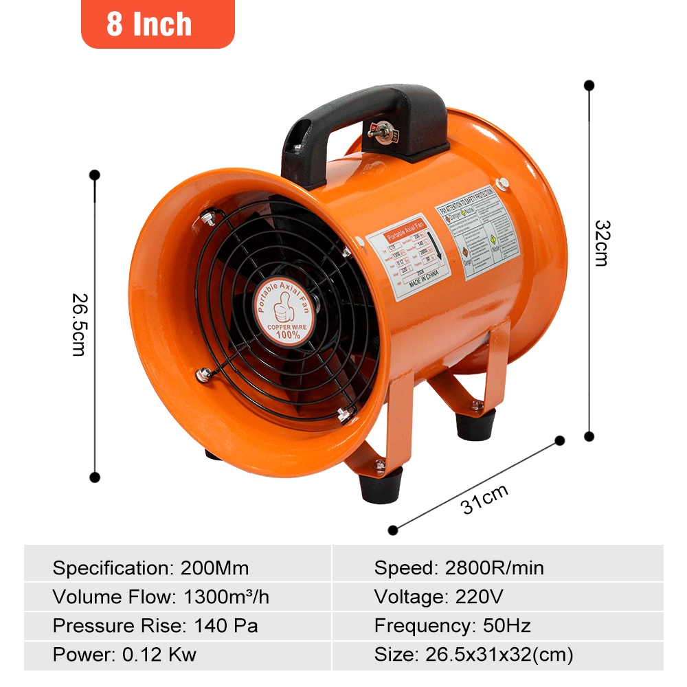 พัดลมดูดอากาศเงียบแบบพกพาขนาด 8 นิ้ว/10 นิ้ว/12 นิ้ว/16 นิ้ว/20 นิ้วเครื่องช่วยหายใจความเร็วสูง