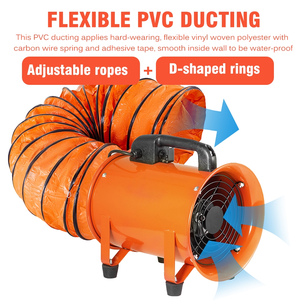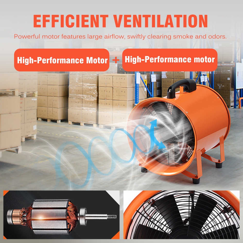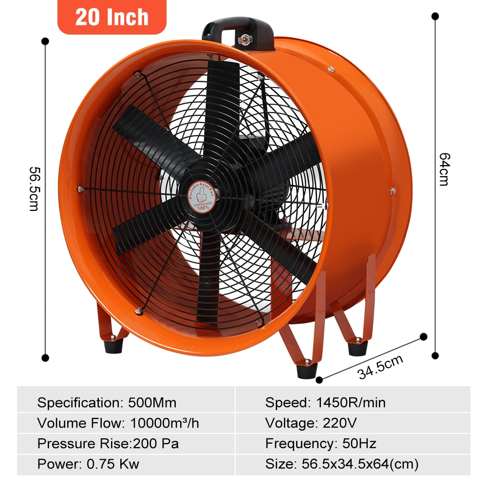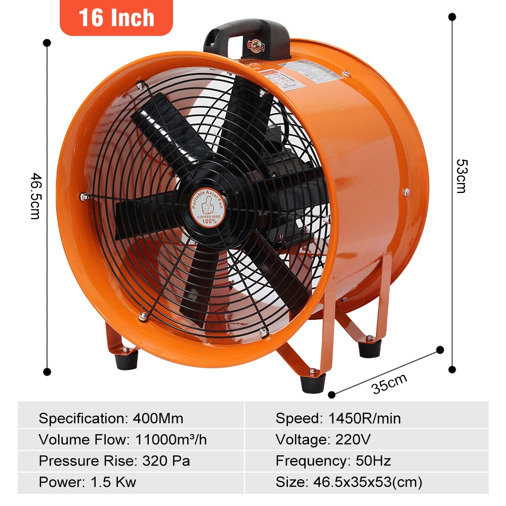 พัดลมดูดอากาศเงียบแบบพกพาขนาด 8 นิ้ว/10 นิ้ว/12 นิ้ว/16 นิ้ว/20 นิ้วเครื่องช่วยหายใจความเร็วสูง