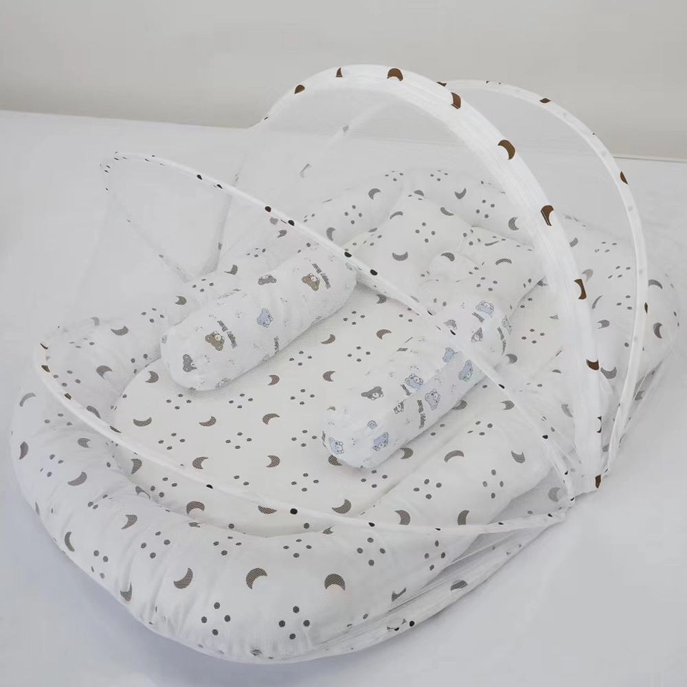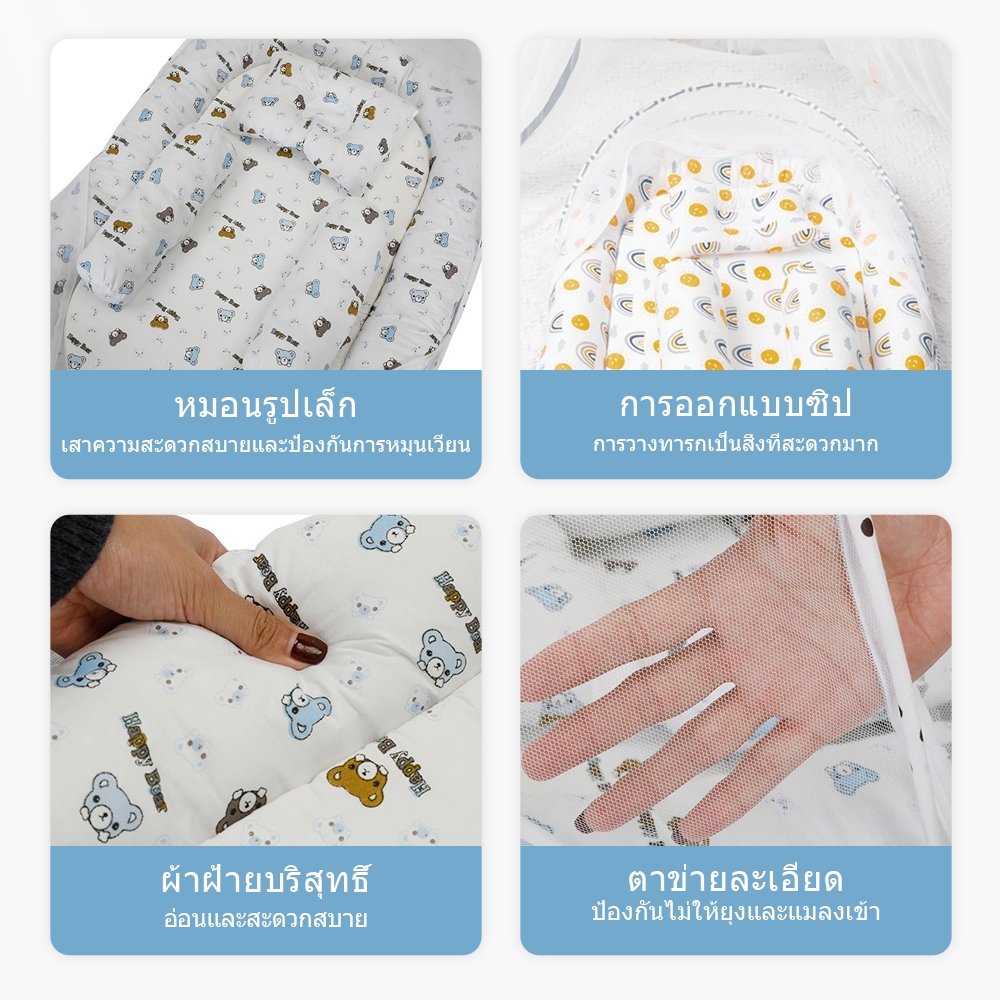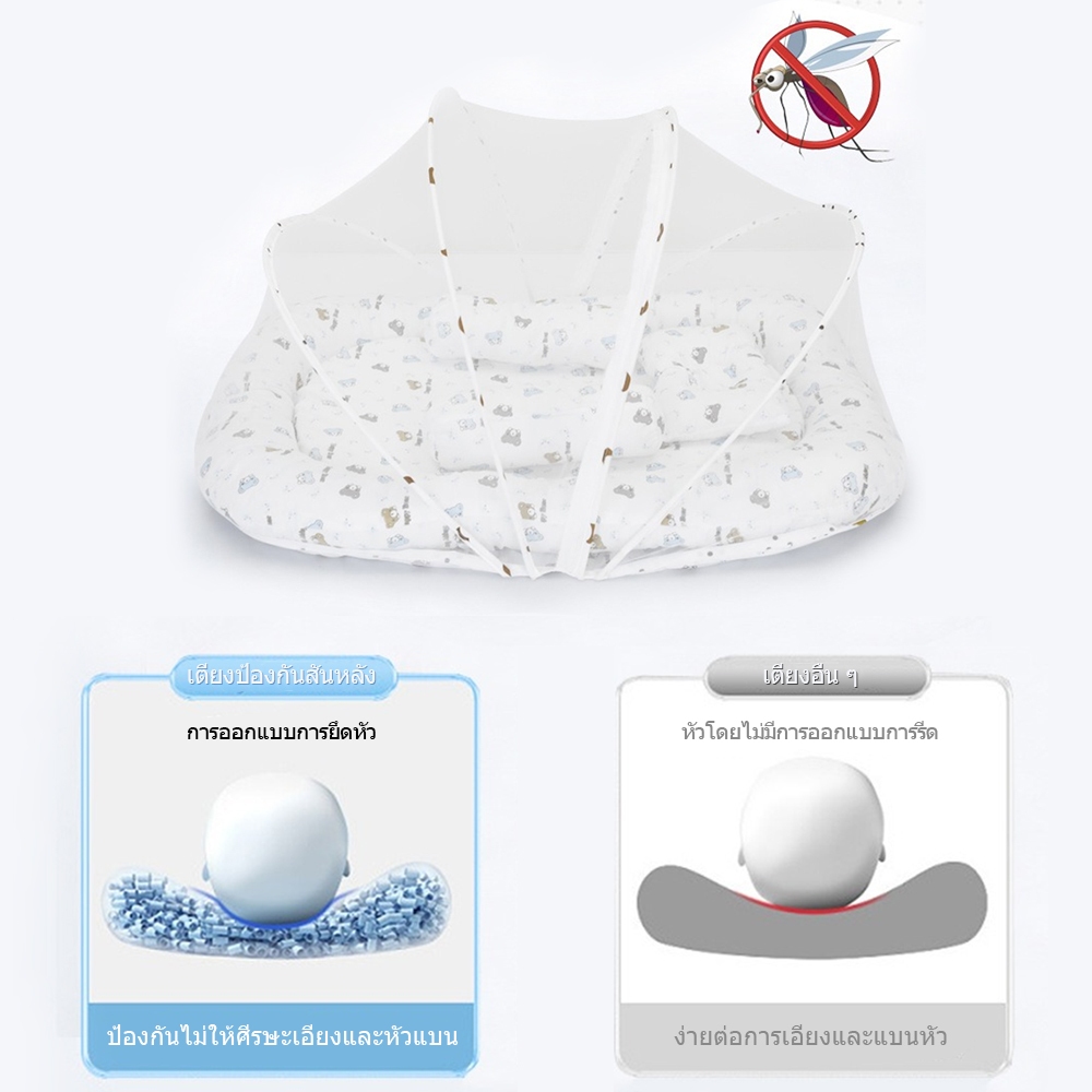 ชุดที่นอนและหมอนรองกันยุงสำหรับทารก เตียงนอนแบบพกพา พร้อมหมอนข้าง ใช้ได้ทั้งในบ้านและเดินทาง