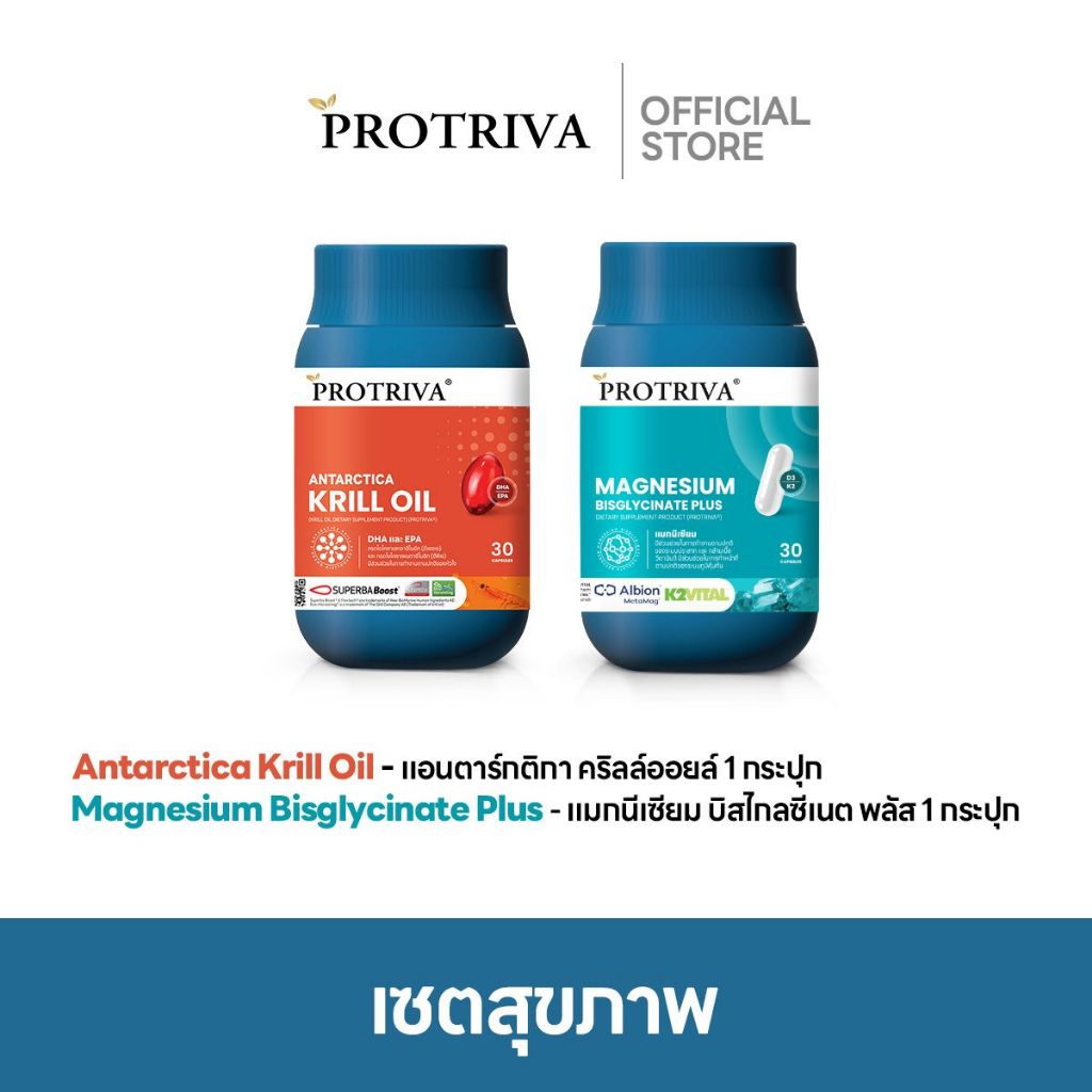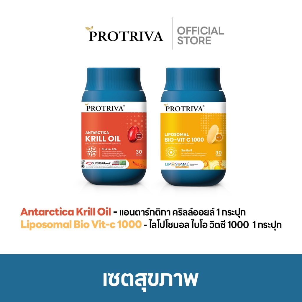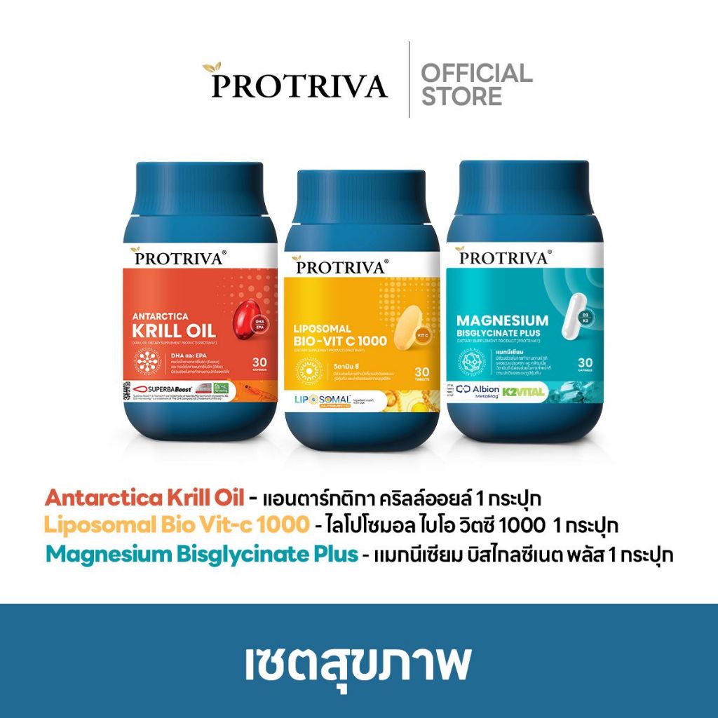 เซตสุขภาพ Protriva Krill Oil + Liposomal Bio-Vit C 1000 + Magnesium Bisglycinate Plus เสริมภูมิคุ้มกัน หลับลึก ผ่อนคลาย