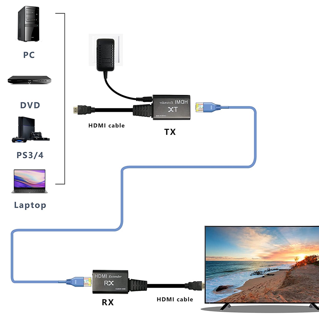 ตัวขยาย HDMI 1080P HDMI เป็นเครือข่าย RJ45 LAN เป็นตัวแปลง 60 ม. 5e 6 พร้อมสาย HDMI และฟังก์ชั่น POC 60 ม.