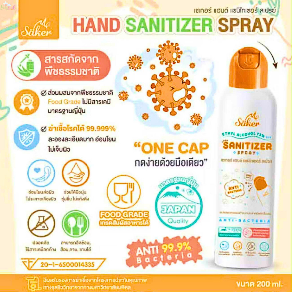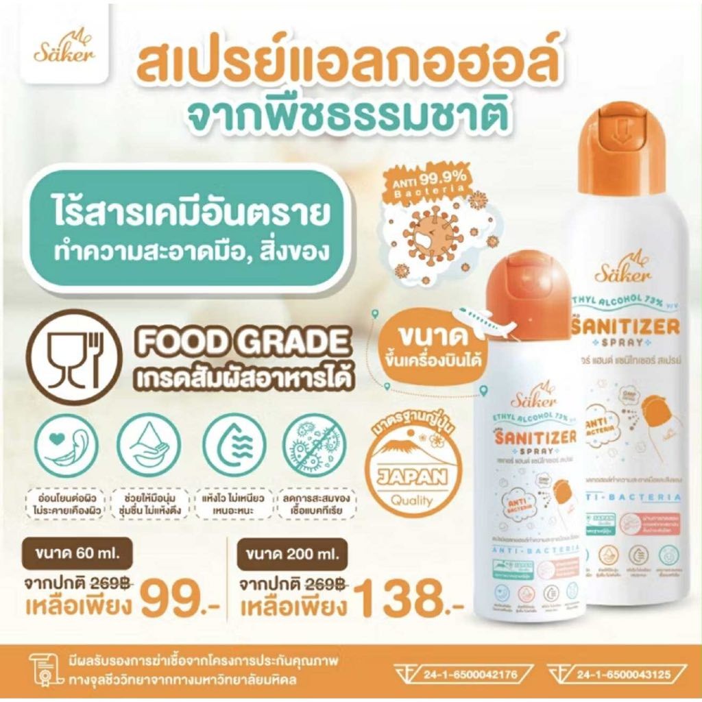 Saker ขนาดพกพา 60 ml สเปรย์แอลกอฮอล์พืชธรรมชาติ ฟู้ดเกรดทำความสะอาดมือ สิ่งของเกรดสัมผัสอาหารได้