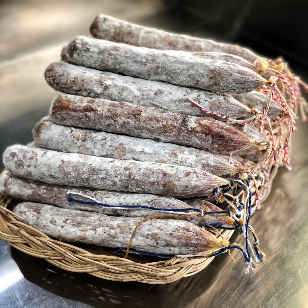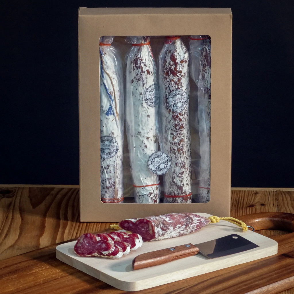 4 saucissons salami assortment + Sharp Knife & Cutting wooden Board cold cuts