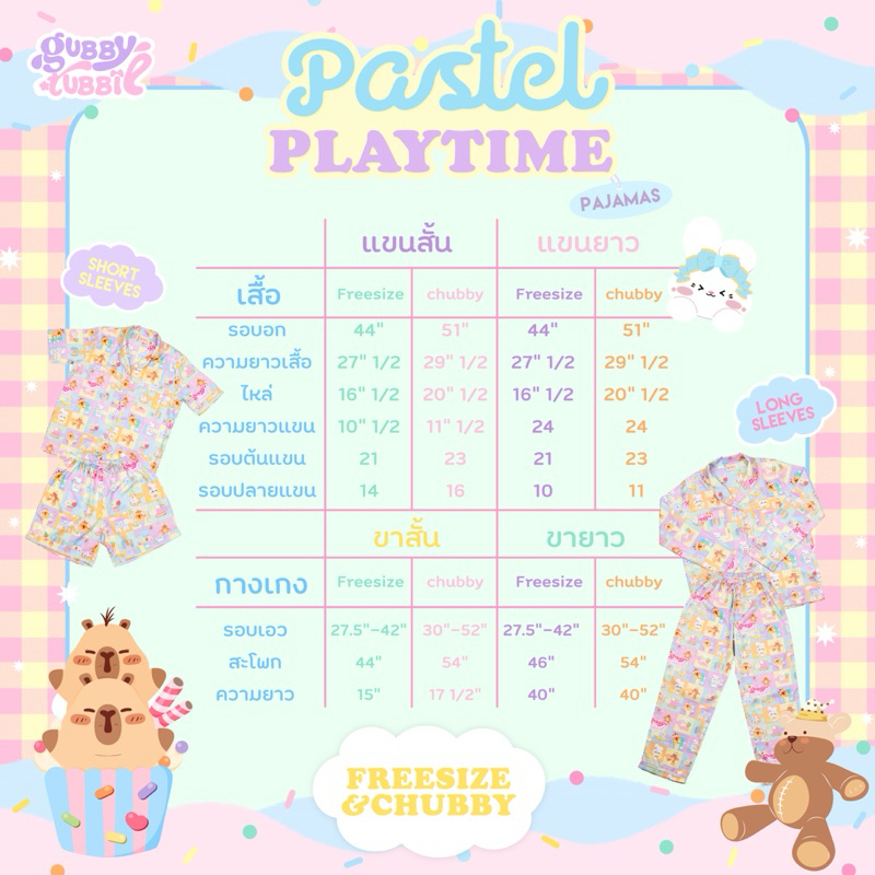 [Gubby&Tubbie] ชุดนอนลายน่ารัก แขนยาว ขายาว รุ่น Pastel Playtime