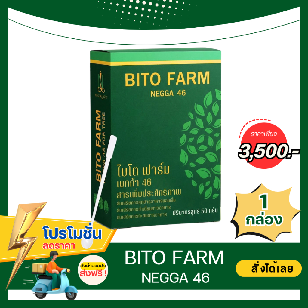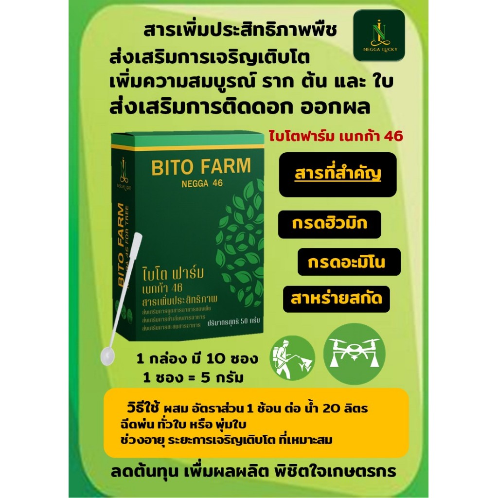 สารเพิ่มความสุขต้นพืช NEGGA 46 อนุภาพเล็ก ดูดซึมไว ให้พืชแข็งแรง ฟื้นใบเร็ว ประหยัดต้นทุน 1 กล่อง 10 ซอง ฟรีเสื้อ