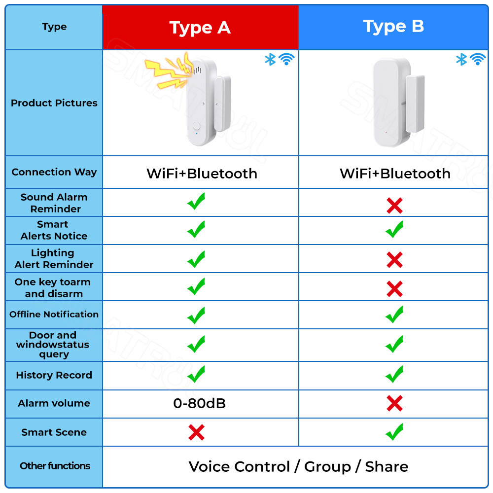 Tuya WiFi เซ็นเซอร์ประตูหน้าต่าง แจ้งเตือนเข้าแอป tuya Door Sensor รองรับ Google Home สัญญาณกันขโมยในบ้าน