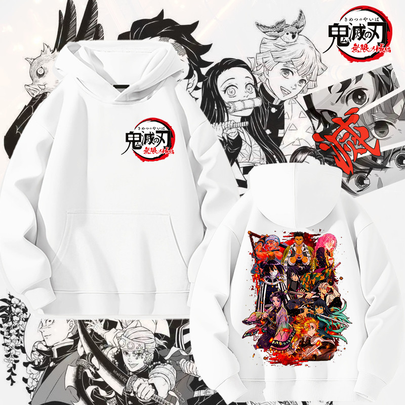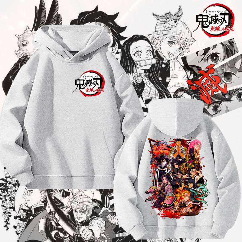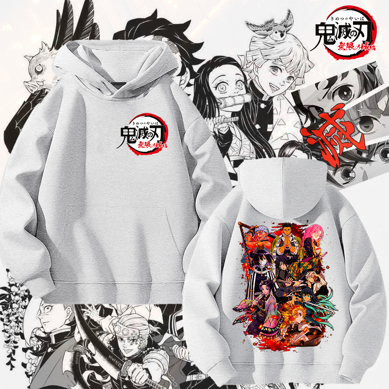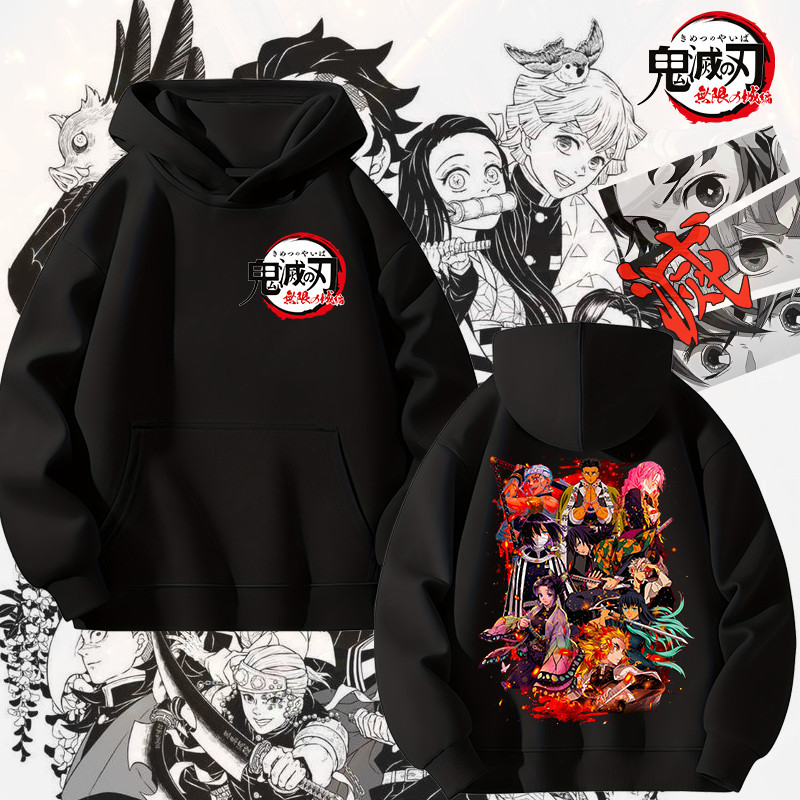 Demon Slayer Hoodie แขนยาว ไซส์สำหรับเด็กและผู้ใหญ่ ทำจากผ้าฝ้าย 100%Size S-5XL