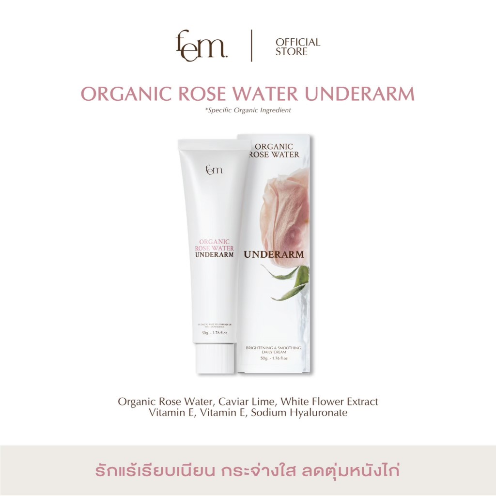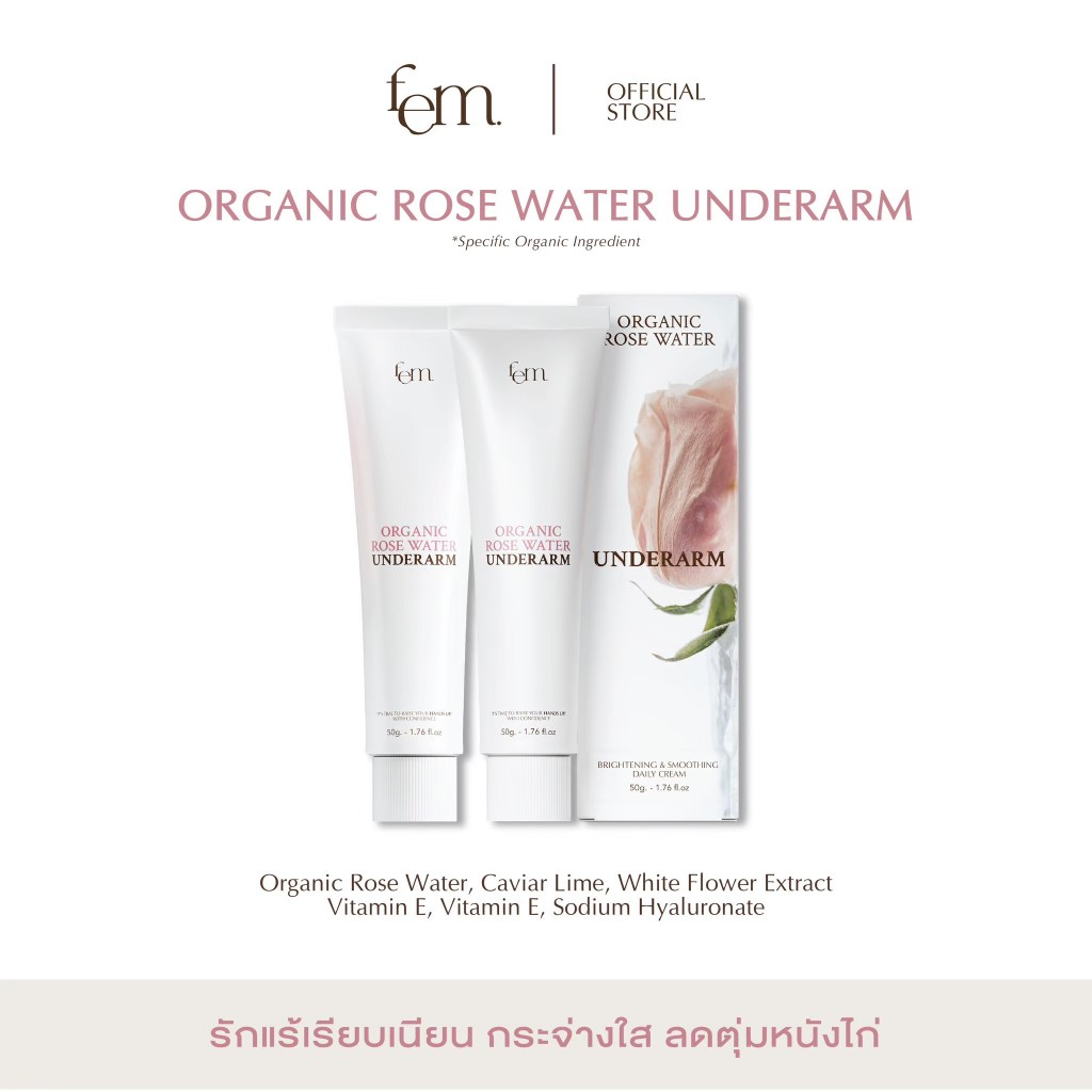 [ ของแท้/ส่งฟรี ] FEM ORGANIC ROSE WATER UNDERARM ครีมทารักแร้เฟ็ม ลดตุ่มหนังไก่ รับแร้เนียน กระจ่างใส