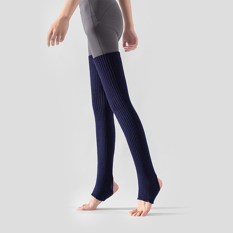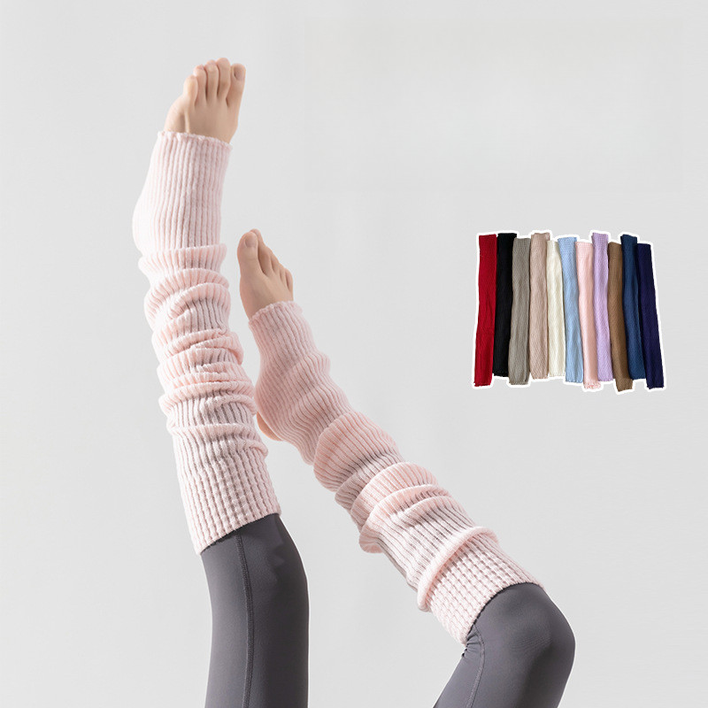 ถุงเท้าโยคะเข่ายาวพิลาทิสสีทึบ