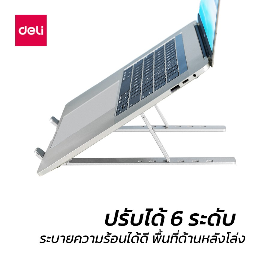 Deli ขาตั้งโน๊ตบุ๊คพกพา แท่นวางโน๊ตบุ๊ค ที่วางแล็ปท็อป ปรับความสูงได้ 6 ระดับ พับได้ laptop stand